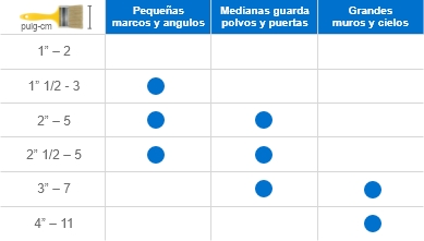 Se elige de acuerdo al tipo de superficie que se pintará. Para paredes es recomendable usar brochas entre las 3'' y 6''; para retoques, esquinas, bordes y encuentros deberán mantener un ancho entre 1 1/2'' y 3''; para estucos, hormigón o albañilería tiene que ser de 4'' a 6''.
