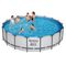 La estructura de la piscina está hecha de acero y PVC de alta resistencia. El modelo tiene grandes dimensiones, un diámetro de 549 cm y una altura total de 122 cm., que tiene una capacidad de 23.062 litros, es decir, una piscina para adultos de la que también podrán disfrutar los niños.