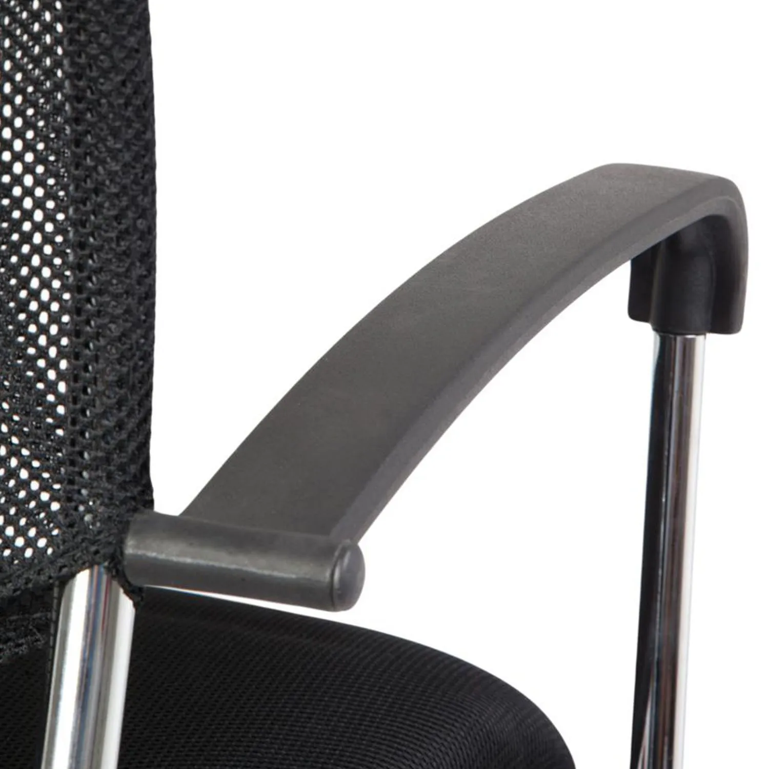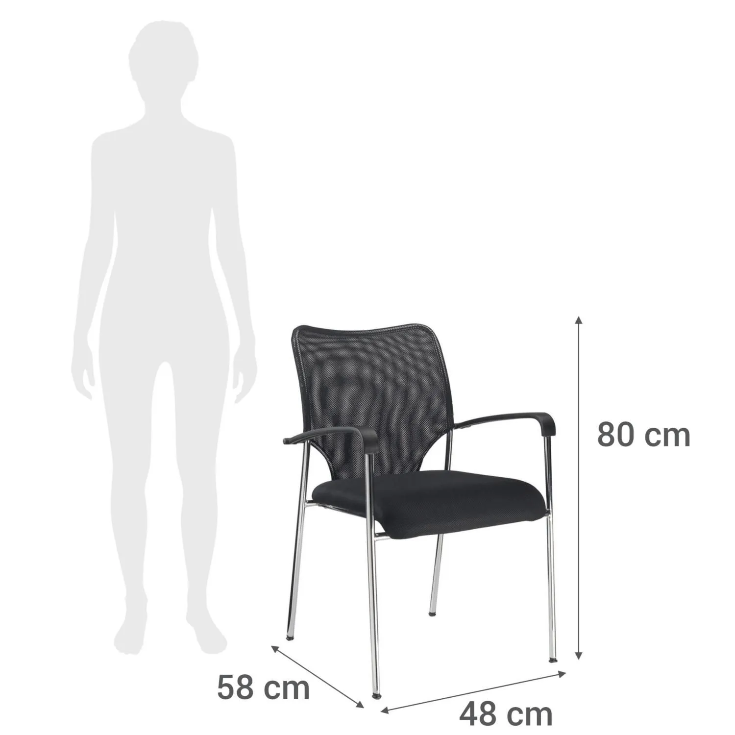 Esta silla fija de visitante, con su respaldo de tela malla negro, te ofrece un soporte adecuado para largas jornadas. Cuenta con apoyabrazos para mayor confort y su estructura de metal asegura durabilidad. Con un ancho de 48 cm y una profundidad de 58 cm, se adapta fácilmente a tu espacio.
