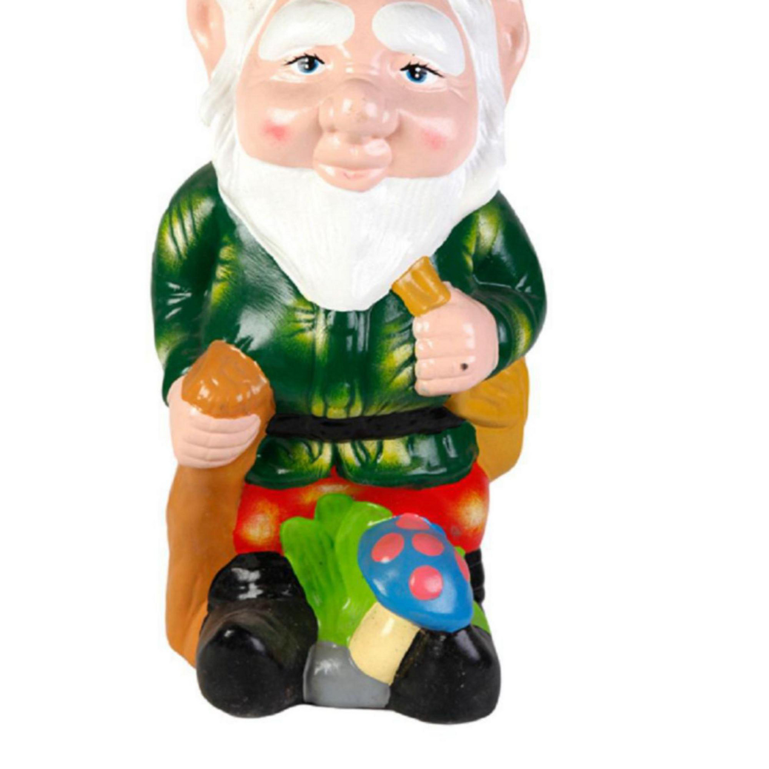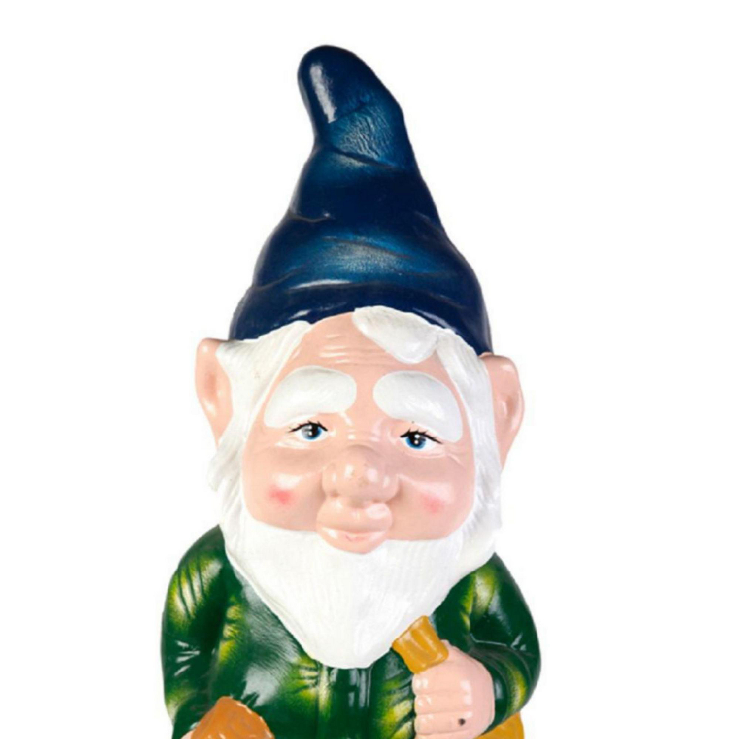 Este enano decorativo está hecho de cerámica y tiene un diseño multicolor, con colores rojo y azul. Es ideal para decorar tu jardín y darle un toque de alegría. Su tamaño de 62 cm de alto lo hace visible desde cualquier punto del jardín.