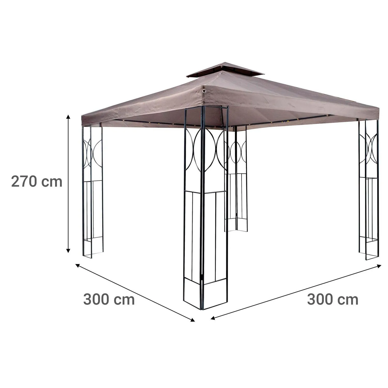 Esta pérgola, con sus 300 cm de largo y 300 cm de ancho, ofrece un espacio ideal para relajarte. Su estructura de metal y toldo de poliéster garantizan durabilidad y resistencia. Cuenta con ventilación y doble panel, ideal para disfrutar del aire libre. Su estilo urbano industrial la hace perfecta para cualquier ambiente.