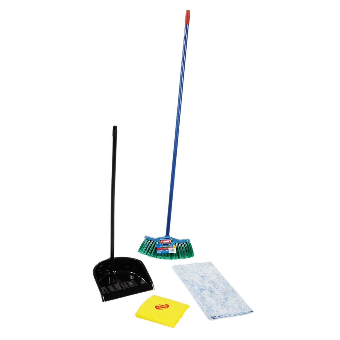 El Combo limpieza doméstica Virutex es la solución perfecta para mantener tu hogar impecable. Con este completo pack podrás barrer, trapear y recoger la suciedad y el polvo de todo tu hogar. El combo incluye una escoba con mango de 1.30 cm de largo, una pala de 1.30 cm de alto y un set de paños para trapear. Todo lo que necesitas para una limpieza eficiente y práctica.