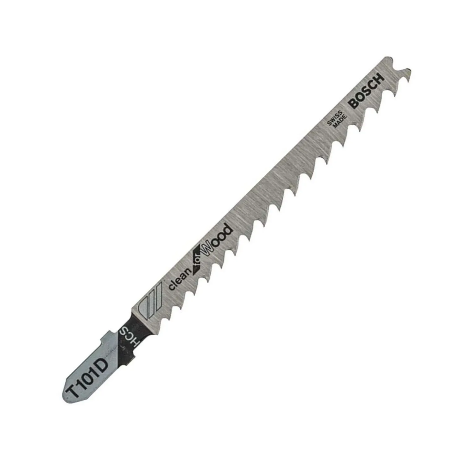 La Hoja de calar T101D Clean for Wood de Bosch, con un largo de hoja de 7.7 cm, es ideal para cortes en madera blanda y materiales no abrasivos. Su diseño con dientes de precisión y un paso de diente progresivo (4-5.2 mm) permite cortar materiales de madera de 10-45 mm de espesor. Son compatibles con sierras de calar con encastre T, lo que las convierte en una herramienta versátil para diversos trabajos.