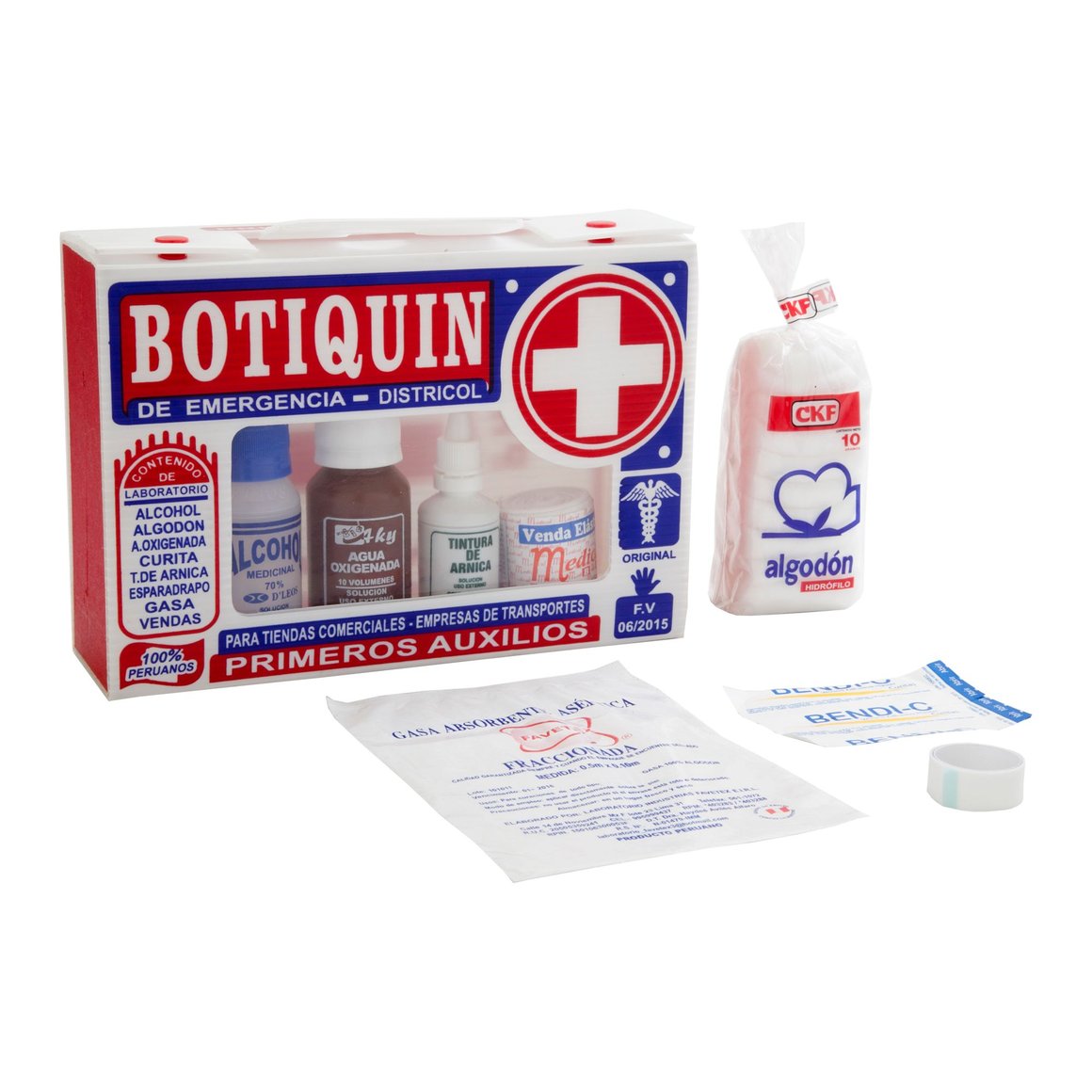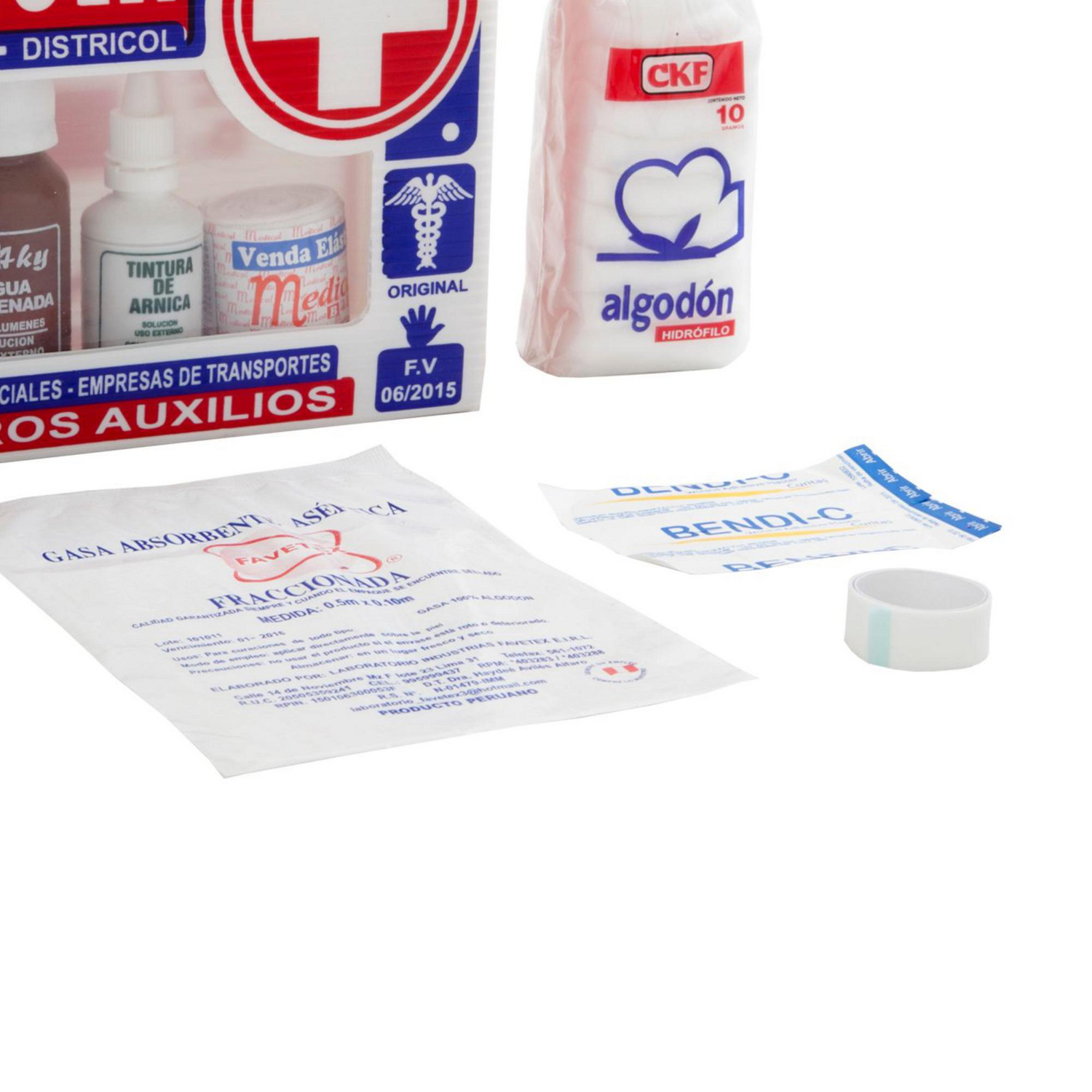 Este botiquín, fabricado en plástico, incluye elementos esenciales como alcohol, algodón, agua oxigenada, curitas, esparadrapo, vendas y gasas. Su diseño compacto, con un largo de 21.5 cm, un ancho de 5.5 cm y una altura de 14 cm, lo hace ideal para guardar en tu auto sin ocupar mucho espacio. Su peso es de 0.333 kg.