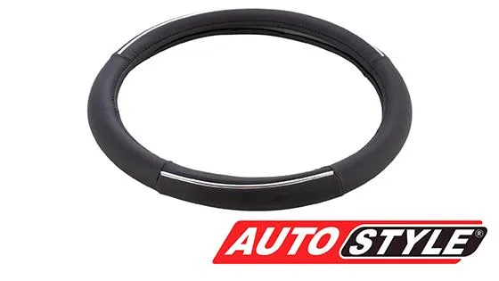 Funda Cubre Volante Para Auto Autostyle Cuerina Negro y Gris 39 cm