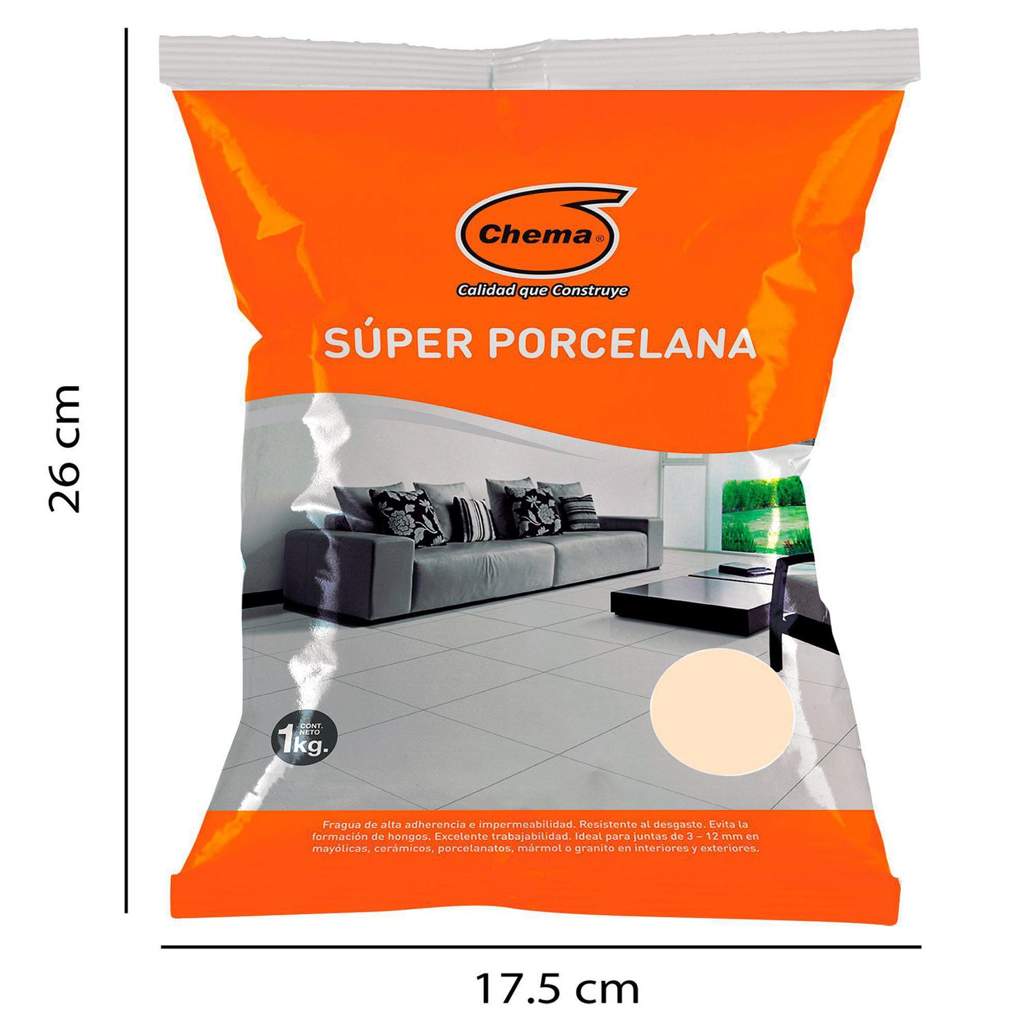 La Fragua para Cerámicas Cuero de Chema tiene un rendimiento de 3 m2/kg y un tiempo de secado final de 24 horas. Está hecha de cemento y polímeros, y no contiene antimoho. Puedes usarla tanto para pisos como para muros, y es compatible con porcelanato, granito y mármol.