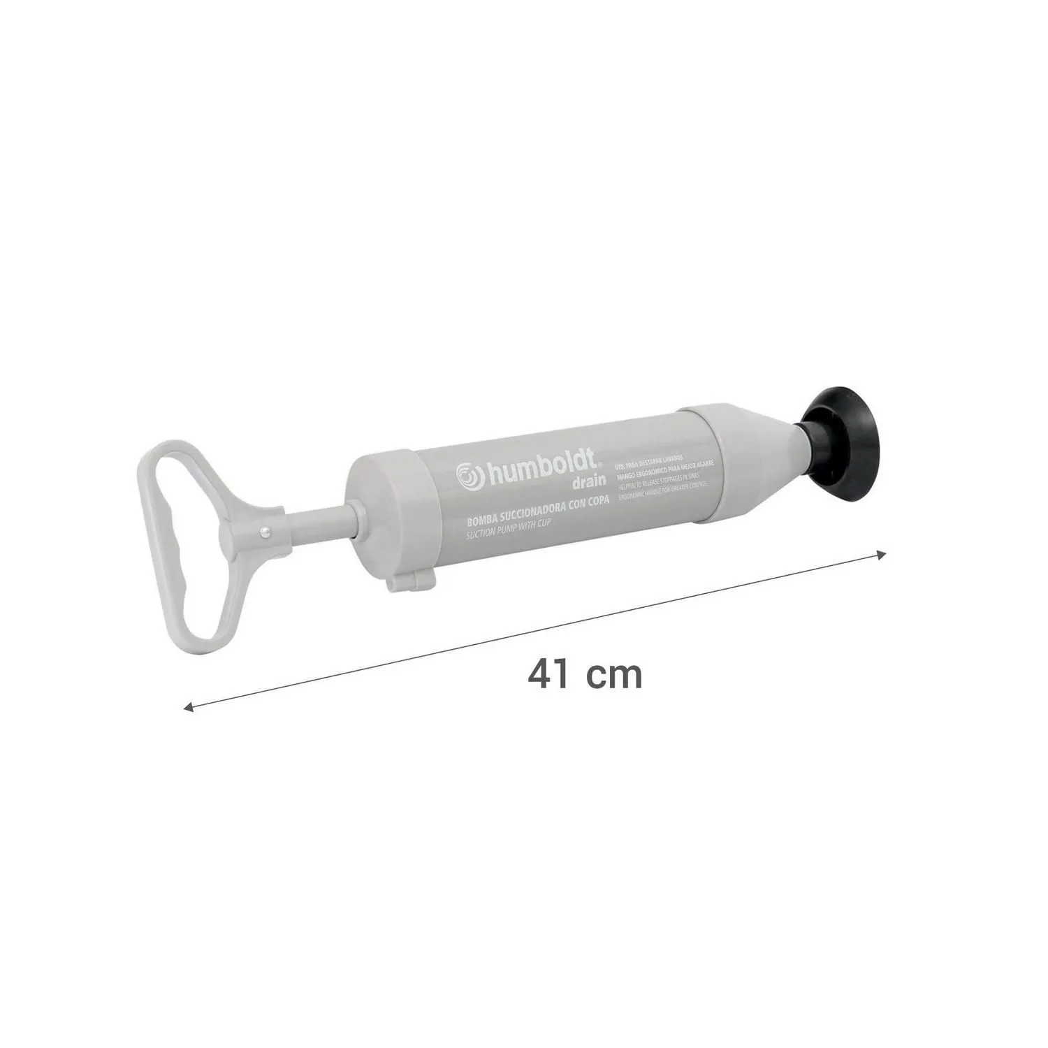 Este desatorador Humboldt cuenta con un largo de 41 cm y un diámetro de 15 cm, lo que lo hace ideal para un uso doméstico. Su mango ergonómico de plástico facilita el agarre y su material de plástico/goma asegura durabilidad. Es útil para destapar lavabos y su diseño es práctico.