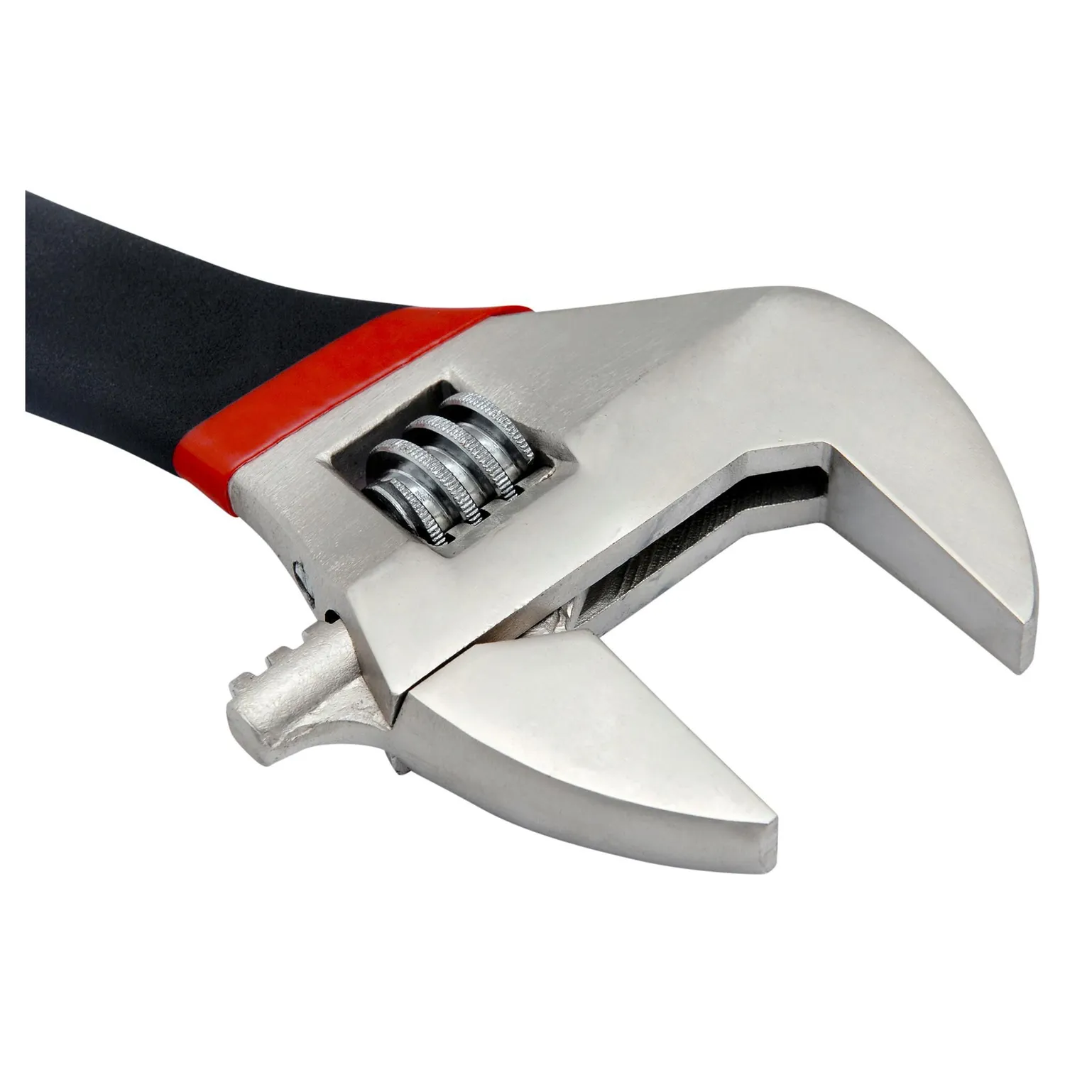 Esta llave ajustable Redline, también conocida como llave inglesa, es ideal para apretar y soltar tuercas. Su boca ajustable permite adaptarse a diferentes diámetros de tornillos y tuercas, con una apertura máxima de 46 mm. Fabricada en acero, esta herramienta es resistente y duradera, con un mango antideslizante para un agarre seguro.