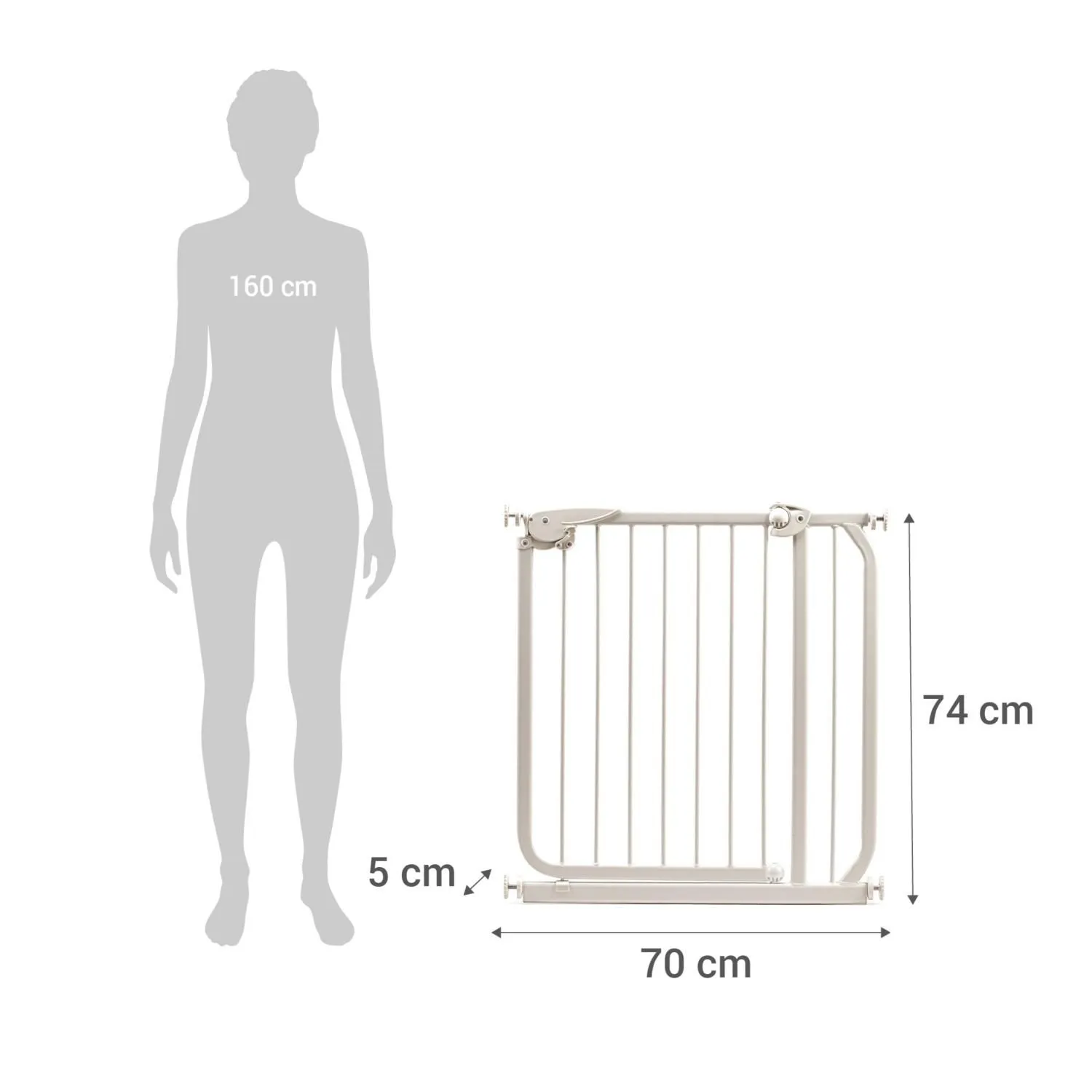 Esta puerta de seguridad, fabricada en metal para mayor durabilidad, cuenta con topes diseñados para no dejar marcas en las superficies. Su estilo neutro y funcional se adapta a cualquier decoración. La marca Holztek ofrece una garantía legal.