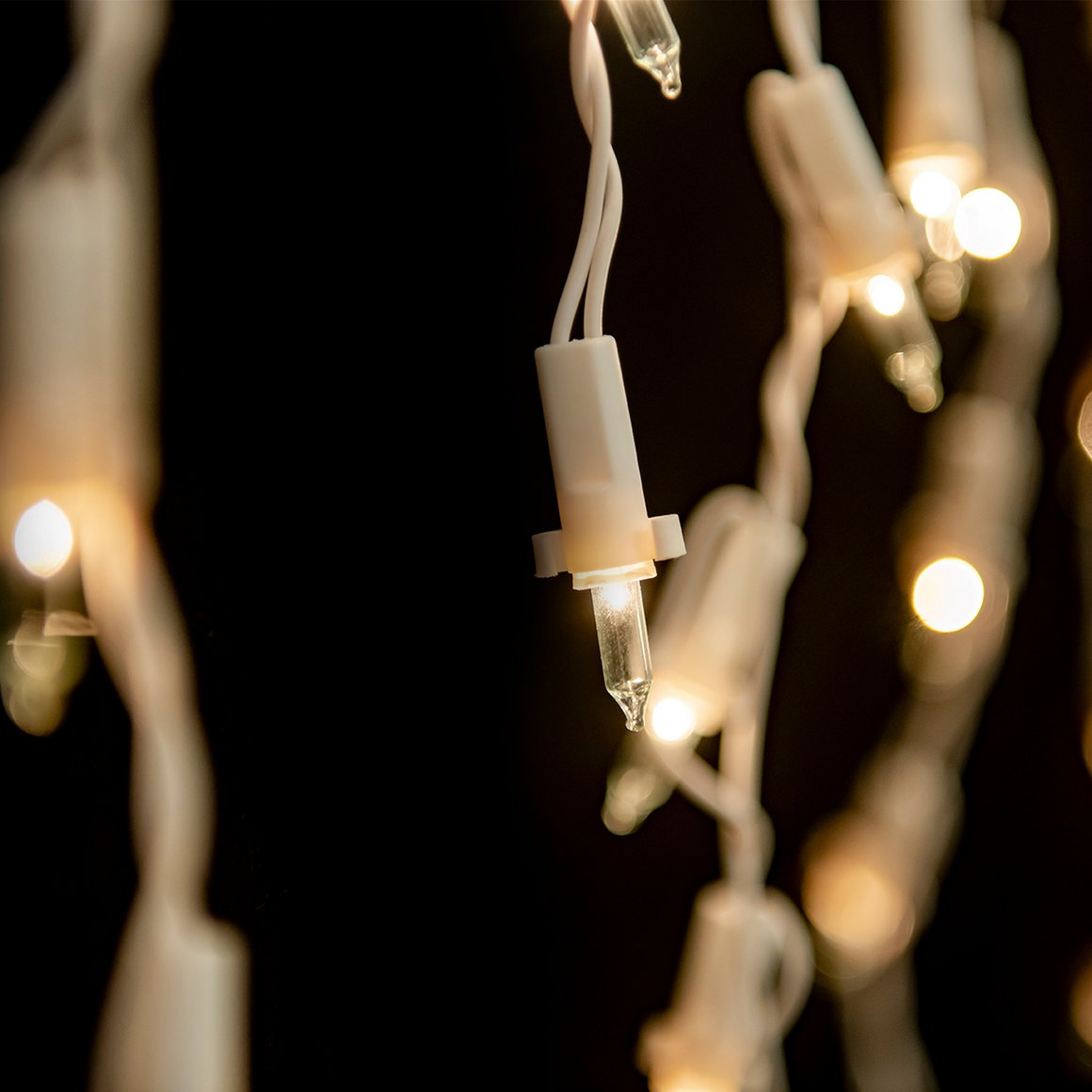 Este juego de luces tiene un largo de 5.4 metros, lo que te permitirá cubrir una gran área. Su color de luz cálida crea un ambiente acogedor y festivo. Las luces están fabricadas con 70% cobre, 22% PVC y 8% vidrio, lo que las hace duraderas y resistentes.