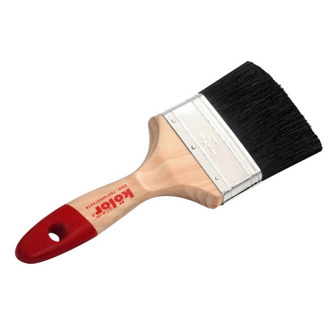 Esta brocha Kolor, con un espesor de 3", es ideal para trabajos domésticos y profesionales. Sus cerdas 100% naturales y negras de alta resistencia, de largo alcance, se impregnan con sencillez a la pintura y luego, al aplicarla con un movimiento de arriba hacia abajo, crean una película uniforme. Es especial para solventes o pinturas, y basta con limpiarla al terminar el trabajo, remojándola y eliminando los restos de pintura para que quede como nueva.