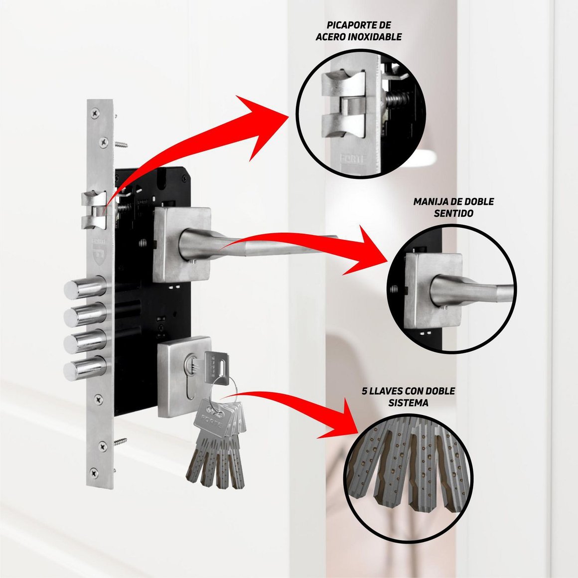 Complementa tu Cerradura de Embutir Cuadrada Principal Izquierdo Forte