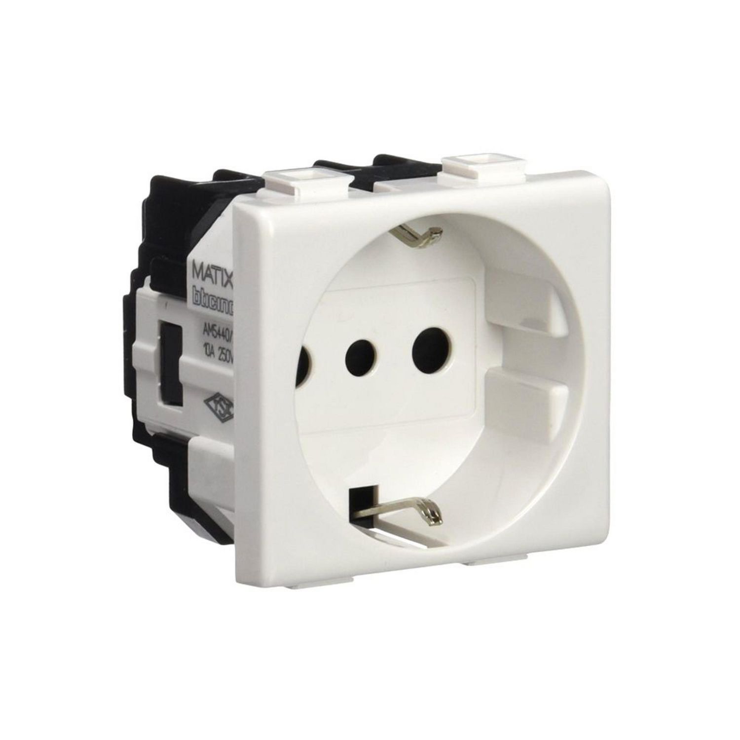 El Dado Schuko P/T Matix Blanco cuenta con 3 agujeros para conectar tus dispositivos. Su tipo de placas/cajas es de caja de distribución embutida, lo que te permite instalarlo de forma discreta. Además, este dado está diseñado para un voltaje de 250 v y una frecuencia de 50/60 hz, con una capacidad de 15 A. Su material de PVC lo hace resistente a la humedad y a los golpes, asegurando una larga vida útil.