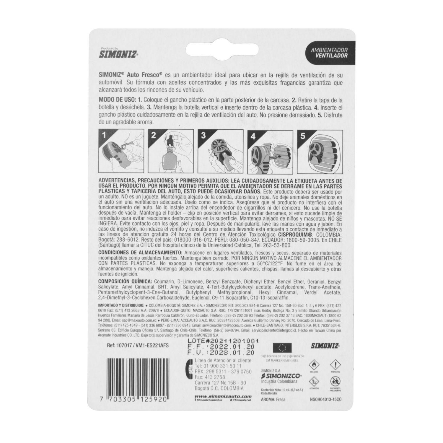Kit Ambientador SIMONIZ Auto Fresco Fresa más Repuesto 10ml