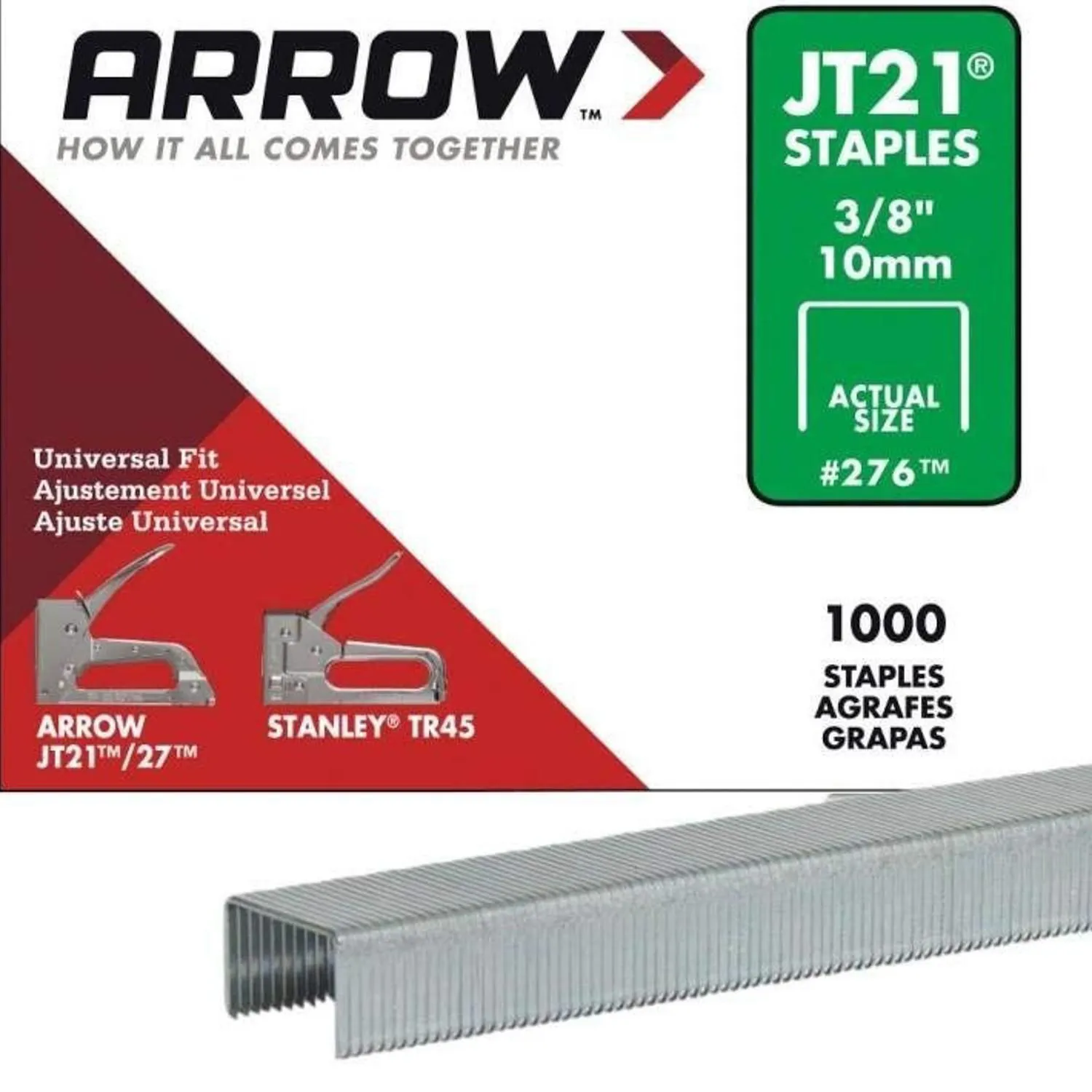 Grapas 3/8" Acero Plateado 1000 Unidades Arrow