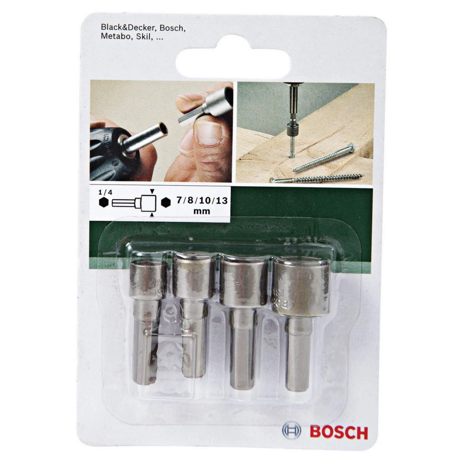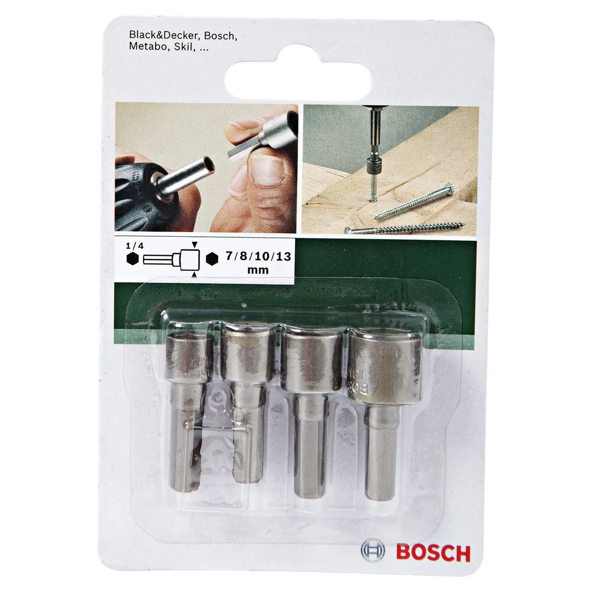 Este set de dados Bosch incluye 4 piezas de diferentes medidas (7mm, 8mm, 10mm, 13mm) y está fabricado con acero resistente a la corrosión. Su diseño Extra Hard y el tratamiento térmico garantizan alta resistencia y rendimiento. Son compatibles con taladros y atornilladores, lo que los hace versátiles para diversas aplicaciones.