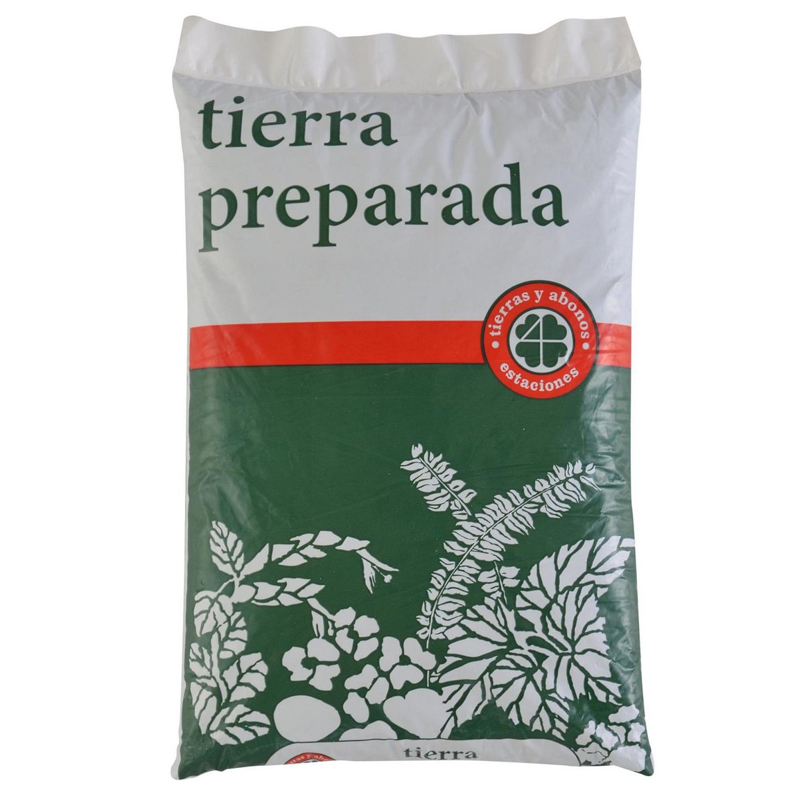 Esta tierra preparada, presentada en bolsa, contiene abono y tierra vegetal, ideal para todo tipo de plantas. Sus dimensiones son de 25 cm de largo, 16 cm de ancho y 4 cm de alto, perfecta para tus necesidades de jardinería.