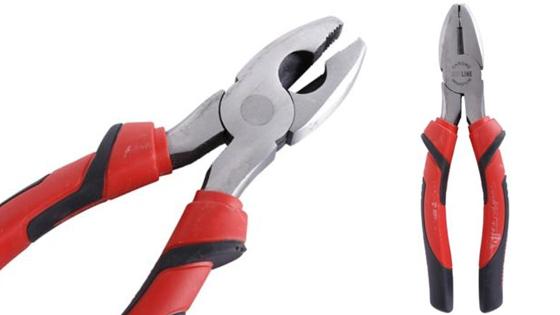 Fabricado en metal revestido en plástico. Mango ergonométrico recubierto con protección pronunciada en la parte superior, para impedir que la mano toque la mordaza de metal en trabajos eléctricos.