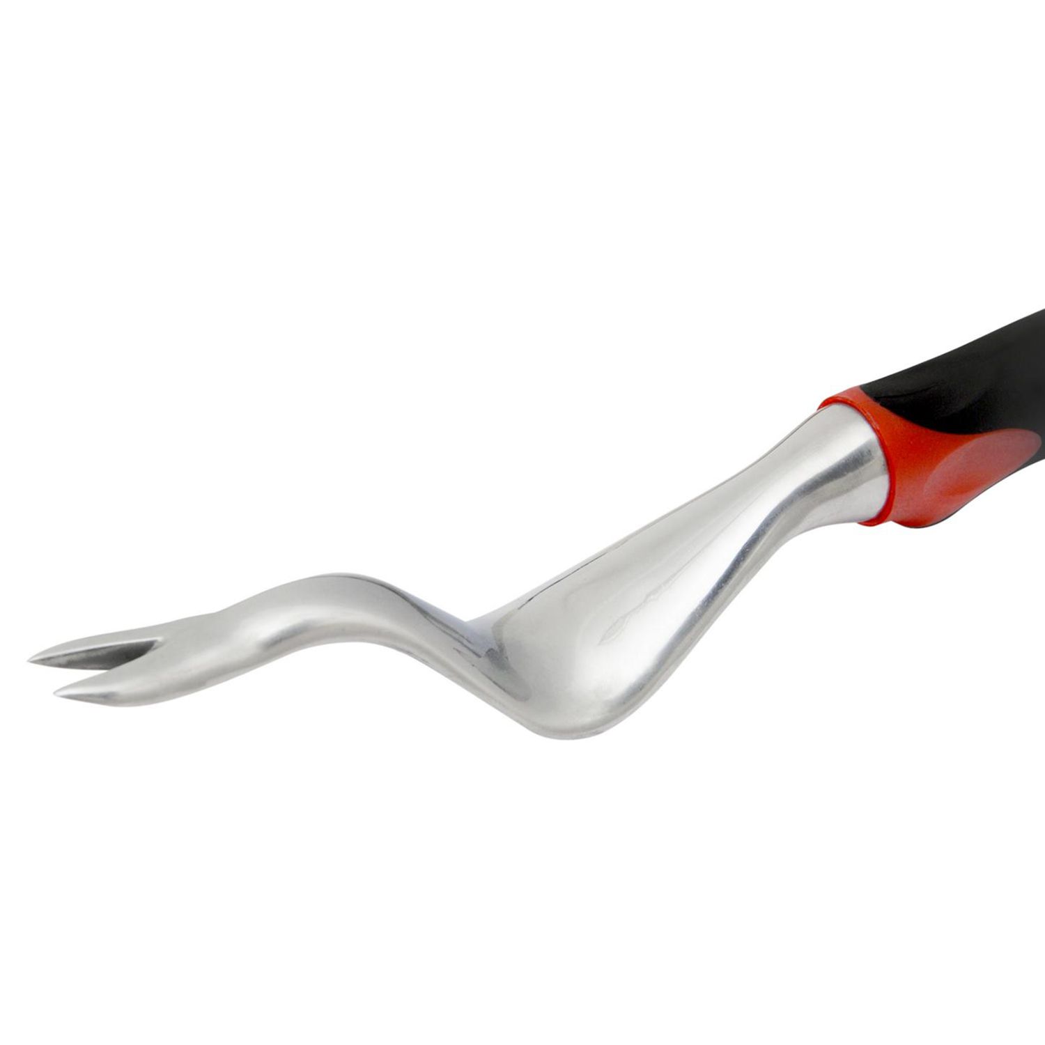 Este desmalezador destaca por su mango de goma ergonómico, que facilita su manipulación. Fabricado en aluminio, es firme y resistente, garantizando durabilidad. Con un largo de 12 cm y un alto de 29 cm, es fácil de manejar y almacenar gracias a su agujero para colgarlo.