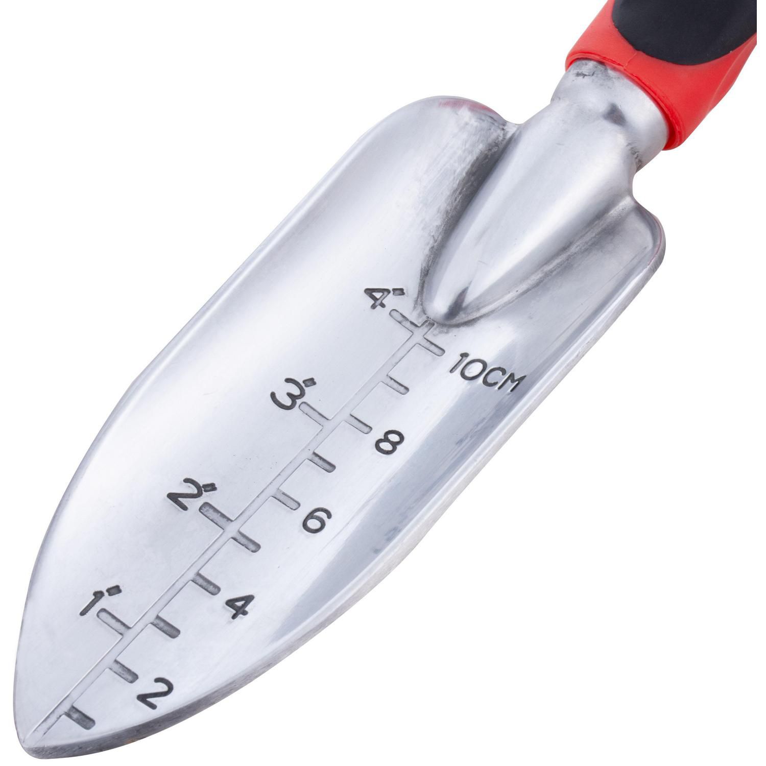 Esta pala cuenta con una hoja de aluminio resistente y un mango de goma que proporciona un agarre cómodo. Su tipo de pala es pequeña, ideal para tareas delicadas. El material del mango es goma, lo que asegura un agarre firme y cómodo durante su uso.