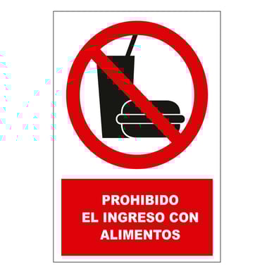Señal de Prohibido el Ingreso de Alimentos 15x22.5 cm.