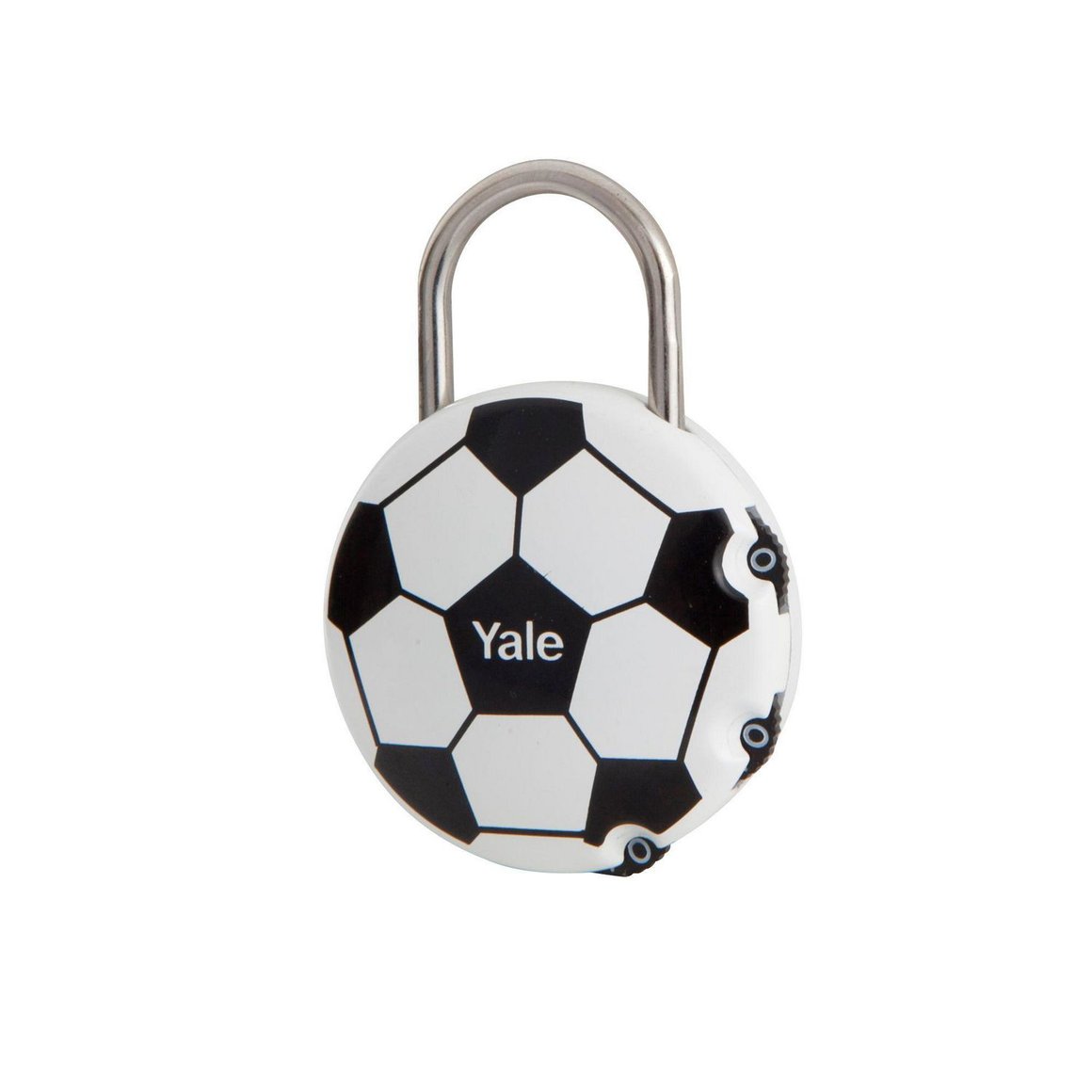 Dale seguridad a tus pertenencias con el Candado con Clave Futbol Yale, ideal para proteger tus objetos de valor. Su diseño con forma de balón de fútbol le da un toque divertido y original, mientras que su mecanismo de combinación te permite personalizar la clave para mayor seguridad. ¡No te preocupes por perder las llaves, con este candado siempre tendrás el control!