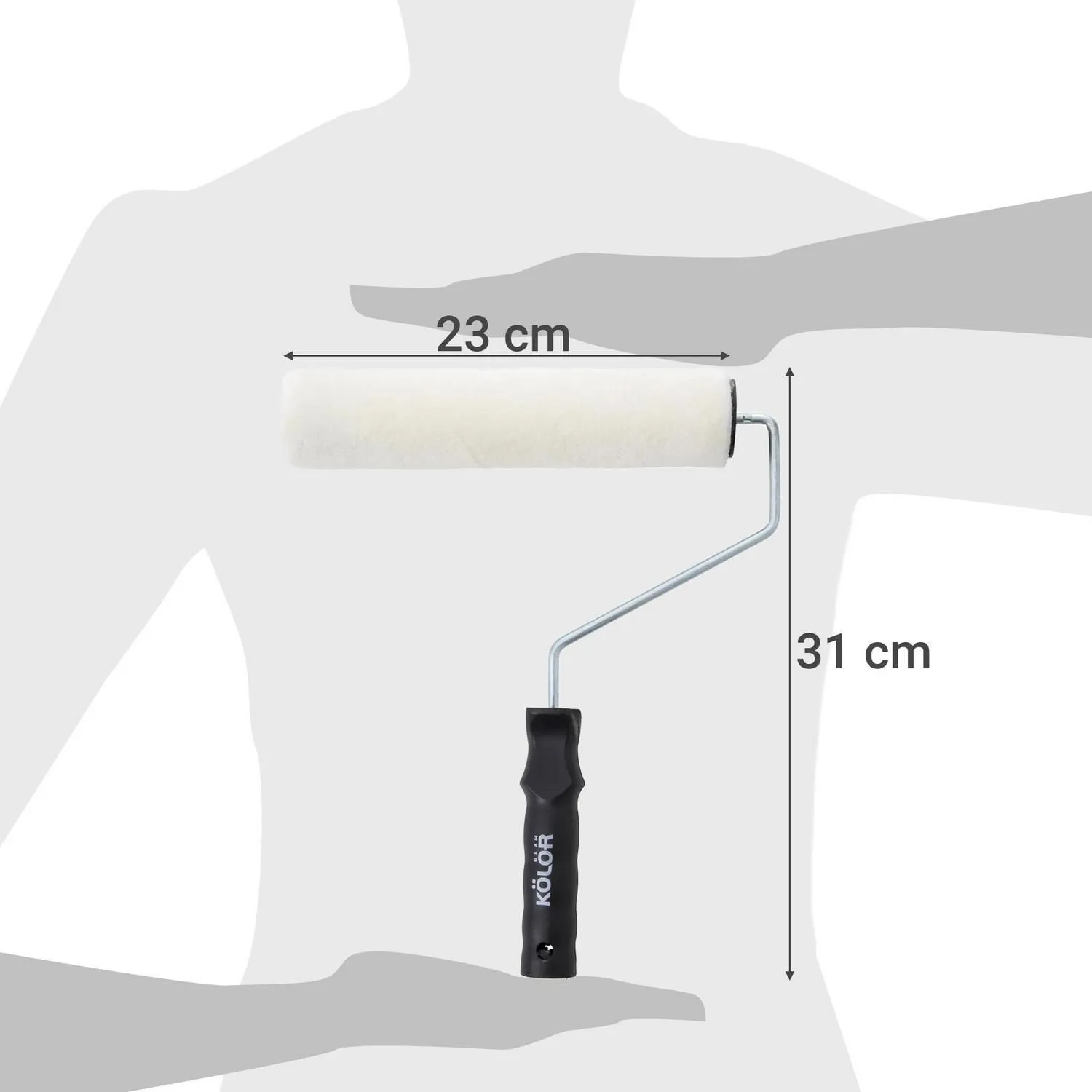 Este rodillo Kolor, con un ancho de 23 cm y un largo de 31 cm, es perfecto para aplicar pintura en diversas superficies. Su diseño permite una mayor absorción y suavidad, facilitando la aplicación de pintura y barnices. El mango del rodillo se adapta a la forma de tu mano, brindando confort durante su uso.