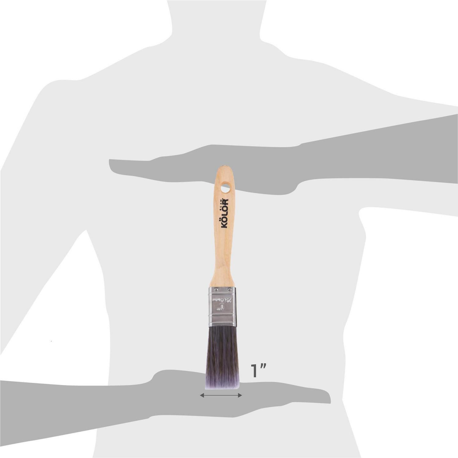 Esta brocha Kölor, con un largo de 23.9 cm, es ideal para usar con látex y esmaltes al agua gracias a sus fibras de polyester y nylon de alta calidad. Su mango ergonómico de madera facilita la distribución uniforme de pintura. Además, cuenta con una perforación para colgarla, lo que facilita su almacenamiento.