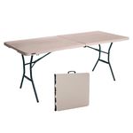 Para el camping o eventos al aire libre tienes a la Mesa Plegable Tipo Maleta 180 cm largo de Just Home Collection. Una práctica superficie con cubierta de plástico resistente y patas de metal. Fácil de limpiar y durable a las inclemencias del tiempo. Llévala adonde la necesites con comodidad y rapidez, ya que está diseñada para plegarse como una maleta. La Mesa Plegable Tipo Maleta 180 cm largo de Just Home Collection ofrece suficiente espacio para acomodar a 8 personas.