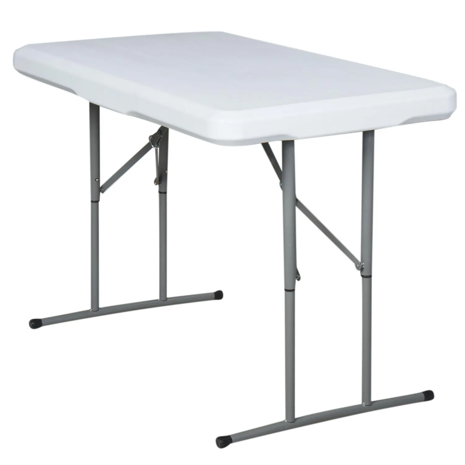 Este kit plegable incluye una mesa rectangular de 105 cm de largo, 63 cm de ancho y 74 cm de alto, junto con dos banquetas. La mesa y las banquetas son plegables, lo que facilita su transporte y almacenamiento. La estructura es de acero y la cubierta es de HDPE, lo que garantiza resistencia y durabilidad. Este kit es ideal para 4 personas.