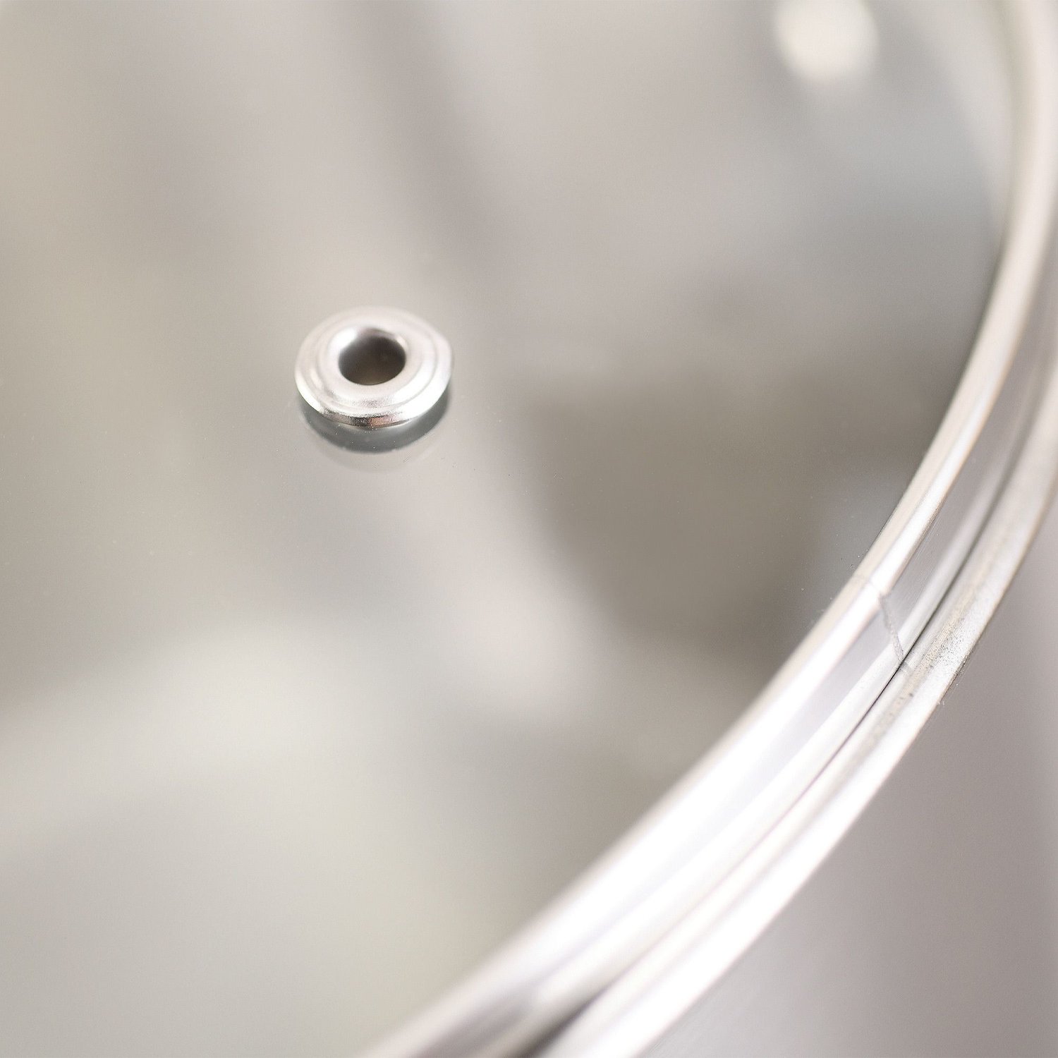 | Características | Forma cónica, borde laminado y escalonado, tapa de vidrio transparente templado, mango de acero inoxidable y perilla con remache, cuerpo de acero inoxidable 201 en 0.6 mm de espesor, fondo de la cápsula: 1.0 mm de aluminio + 1.0 mm de hierro + 1.0 mm de aluminio, acero inoxidable 18/0 Protector inferior de acero. Acabado interior satinado, pulido espejo exterior. |
