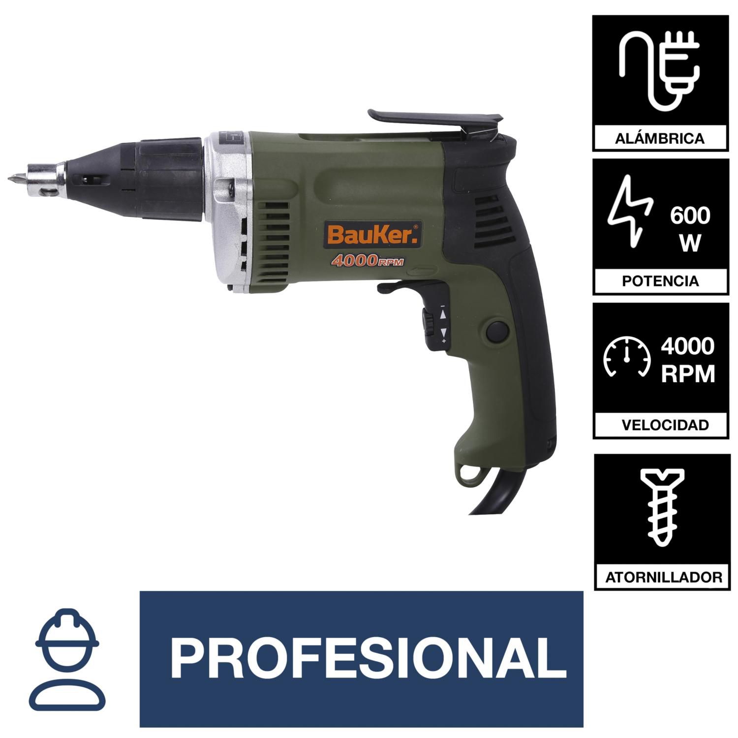 Atornillador Para Drywall Eléctrico 6 mm 600W Bauker