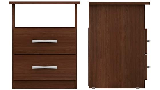Elaborado en un material de madera aglomerado con un acabado mate de pintura color café. Cuenta con 2 cajones para que puedas guardar tus cosas personales. Además, su base te permitirá ubicar tus adornos decorativos, libros, plantas o una lampará de velador.