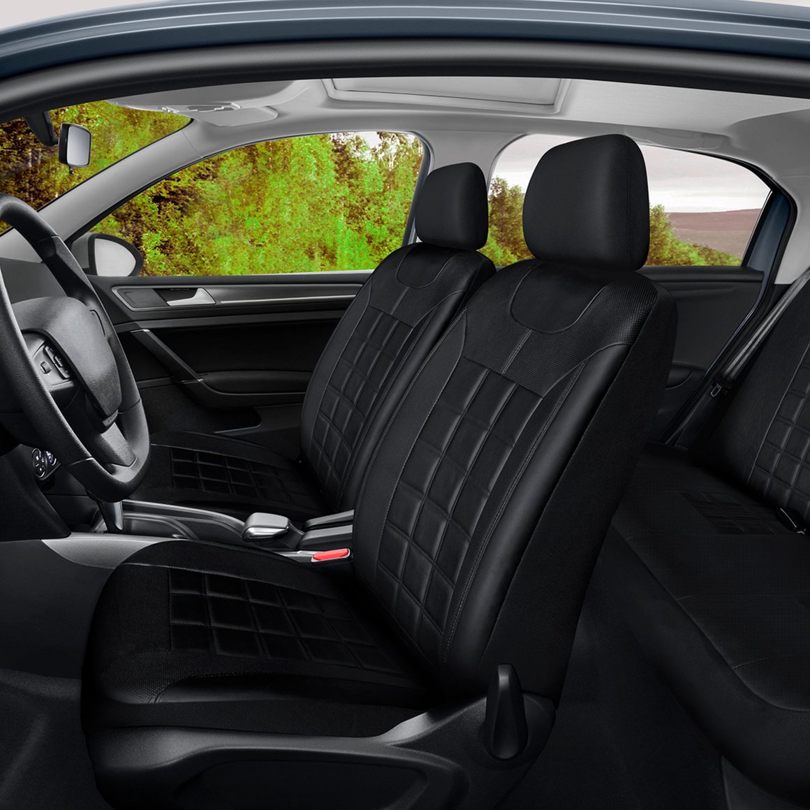 El set de fundas Autostyle está fabricado con PVC resistente y espuma gruesa, garantizando durabilidad y confort. Su color negro le da un toque sofisticado a tu vehículo. Además, su fácil instalación y limpieza con un paño hacen que el mantenimiento sea sencillo y rápido. El producto cuenta con cinco apoya cabezas, una funda trasera y dos delanteras para los asientos, incluyendo el respaldo.