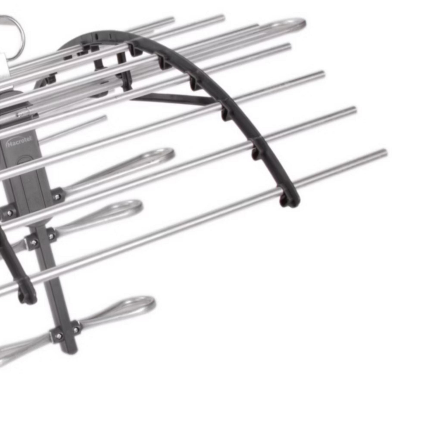 La Antena Tv Digital Exterior de Macrotel es una antena exterior que te permite disfrutar de una señal de TV digital de alta calidad. Su diseño compacto y ligero la hace fácil de instalar, y su material de aluminio y PVC la hace resistente a las condiciones climáticas. La antena tiene un alcance de 10 metros, lo que te permite disfrutar de una señal clara y nítida en Full HD. La antena funciona con una frecuencia de VHF-88 y tiene un ancho de 16 cm, un alto de 6 cm y una profundidad de 6 cm.