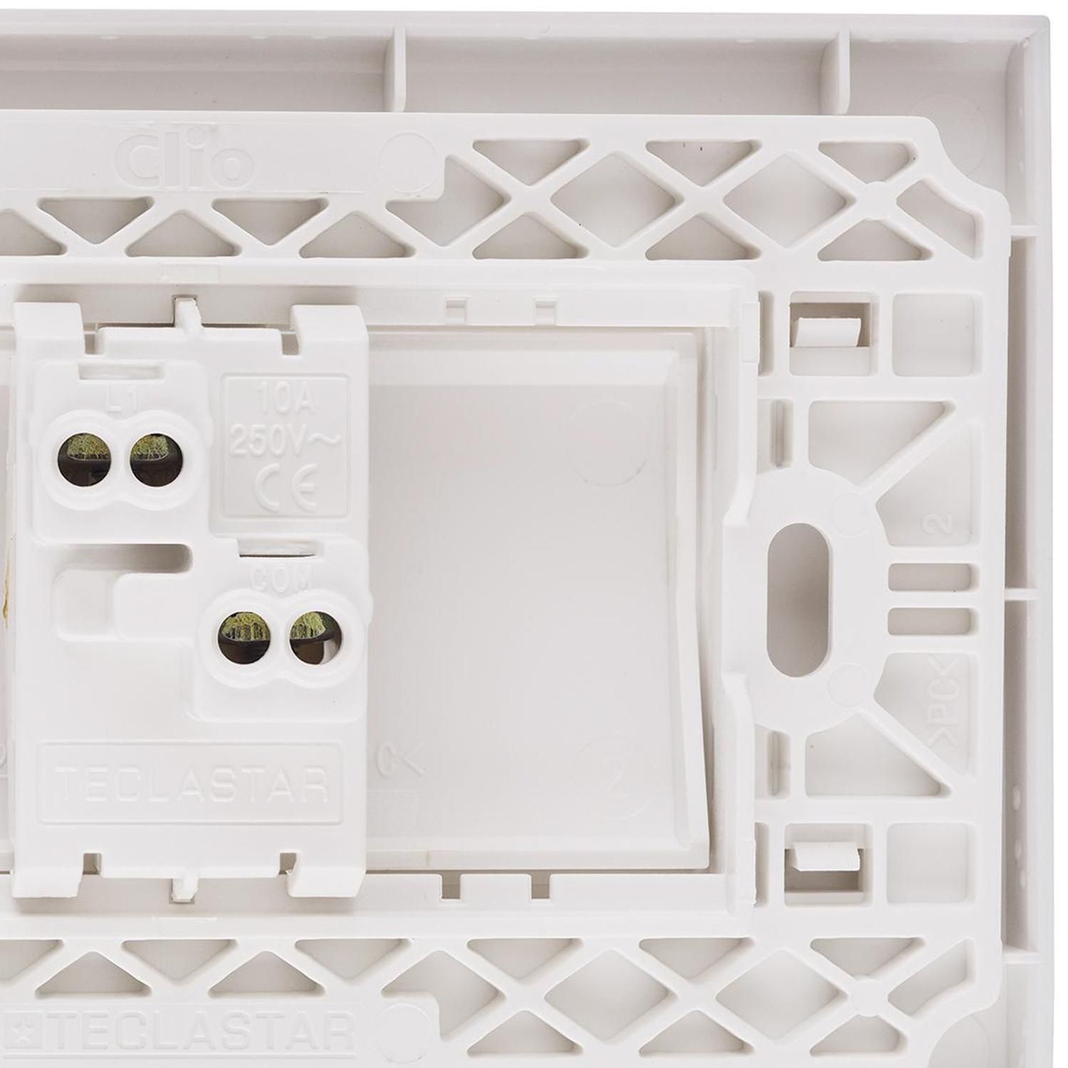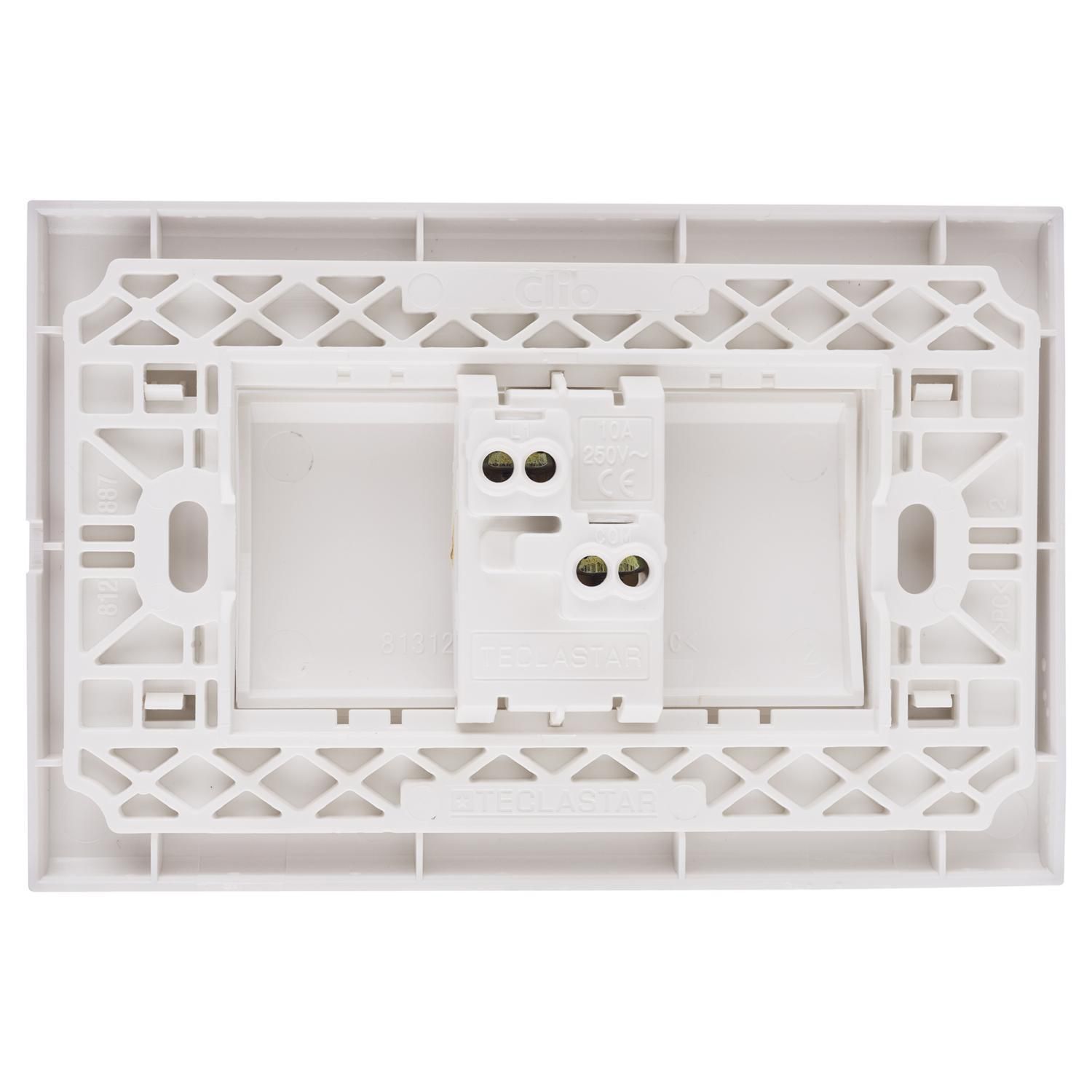 El Interruptor Simple Clio Blanco, de la línea Clio, es fácil de instalar y está diseñado para desviar la corriente eléctrica. Cuenta con un voltaje de 250 V y capacidad para un interruptor. Sus dimensiones son: 4 cm de largo, 12 cm de ancho y 8 cm de alto. Es ideal para controlar la iluminación en tus espacios.