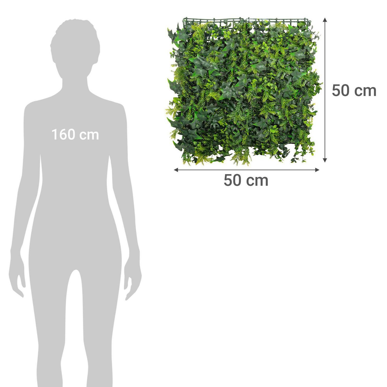 Este cerco artificial de Just Home Collection, con un ancho y alto de 50 cm, es ideal para terrazas y exteriores. Fabricado con plástico, PVC, metal, madera y telas artificiales, este jardín vertical es fácil de limpiar con un paño húmedo. Para un aspecto más lustroso, puedes usar un abrillantador.