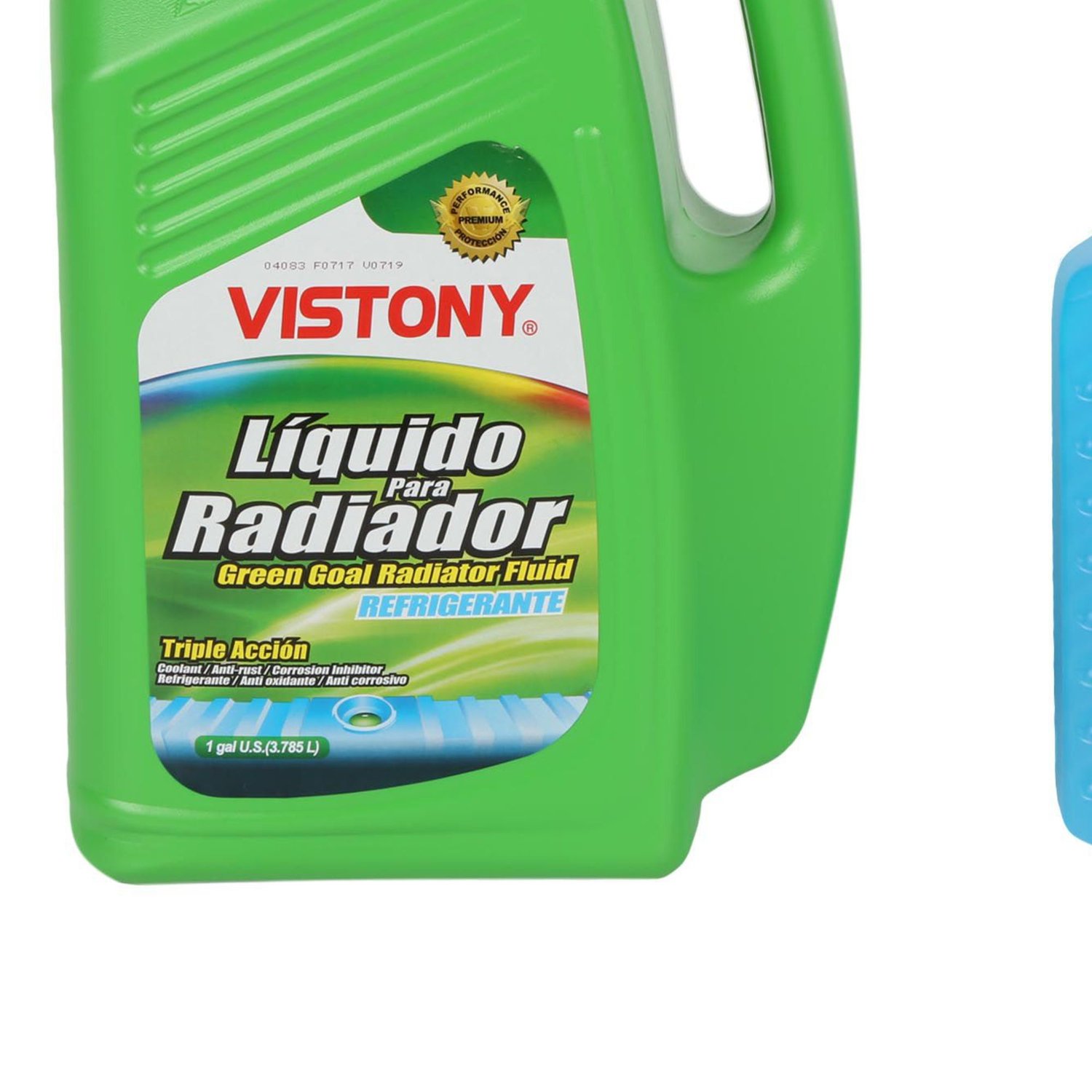 El Líquido Radiador + Limpia Parabrisas de Vistony es un producto de alta calidad que te ofrece una triple acción: refrigeración, protección contra la corrosión y anti-corrosivo. El líquido para radiador es de color verde y está hecho de plástico. El limpia parabrisas es multiusos, ideal para todo tipo de superficies lavables.