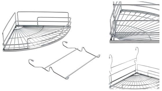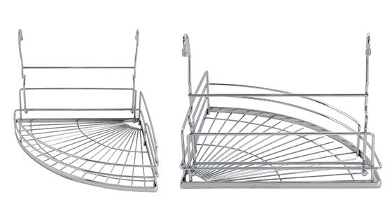 Su formato lo hace apropiado para ubicarlo en un ángulo entre dos paredes. En él se pueden colocar elementos de higiene personal o artículos de limpieza, teniendo en cuenta el lugar y las necesidades del momento. Lo puedes limpiar con agua y detergente o sólo con un trapo seco sin que se alteren sus componentes. Se puede elegir la altura que sea más cómoda para manipular los objetos.Su estructura es abierta y cuenta con laterales del mismo estilo. Tiene una terminación cromada que le da el aspecto visual atractivo y es la encargada de proteger la materia prima de base. Se sostiene por medio de ganchos que pueden apoyar en la pared o también colgarse de un barral de madera o de otro material, todo depende de tus gustos y de la decoración de los espacios.