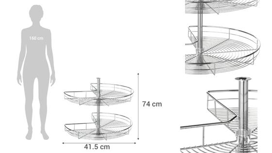 | Características | Repisa de 270º. La altura de las canastas se puede ajustar a su gusto. Marco ajustable de 60 y 90 cm de alto. Cada repisa soporta máximo 18 Kg. |