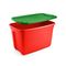 Esta caja organizadora Reyplast tiene un ancho de 42.9 cm y una profundidad de 65.4 cm, ideal para guardar tus pertenencias. Cuenta con 2 piezas y está diseñada para uso multiuso. Su tapa verde complementa el color rojo de la caja, creando un diseño atractivo.