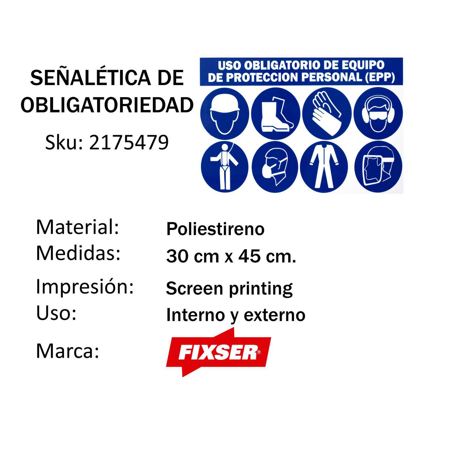Señal Ps Uso Obligatorio De Epps 30X45Cm