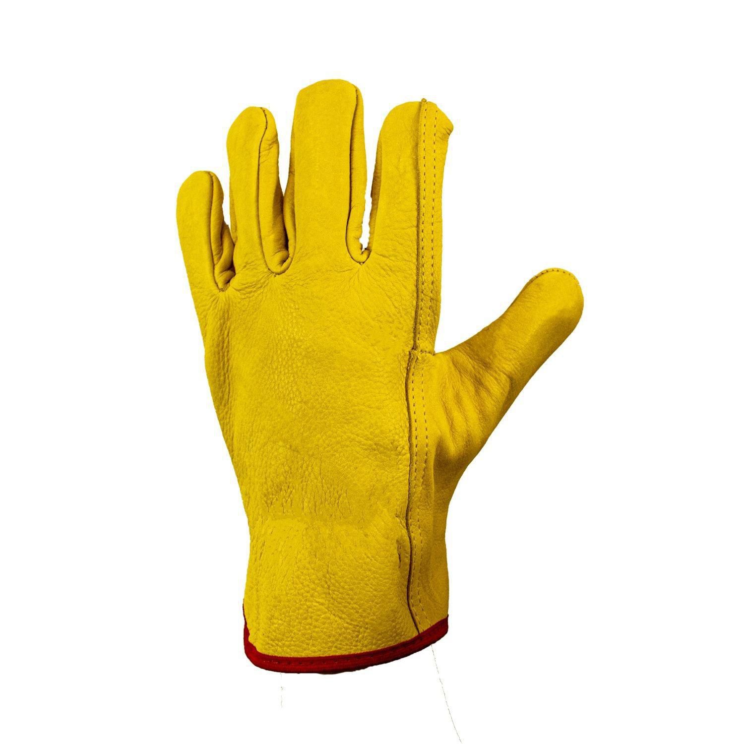 Estos guantes son de talla única y están hechos de cuero, lo que los hace resistentes y duraderos. Además, son biodegradables, lo que los convierte en una opción ecológica. Su color amarillo te permite destacar en cualquier ambiente de trabajo, y su textura rugosa te proporciona un agarre firme y seguro. Estos guantes son ideales para trabajos profesionales.