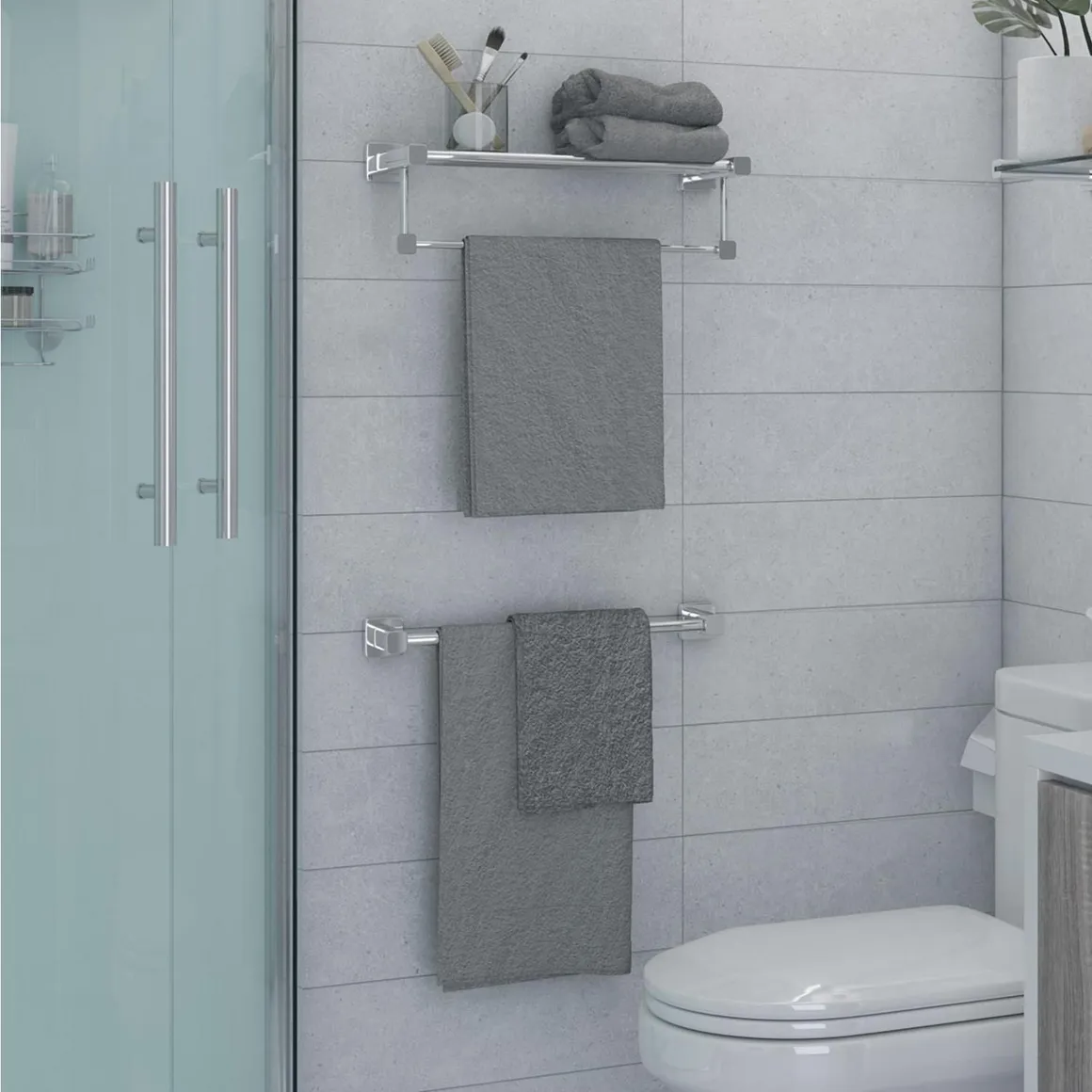 Completa tu baño con los accesorios metálicos. Considera los portapapeles, los accesorios cromados y los toalleros para crear un ambiente armonioso y funcional. Estos complementos son ideales para mantener tu baño organizado y con un estilo impecable.