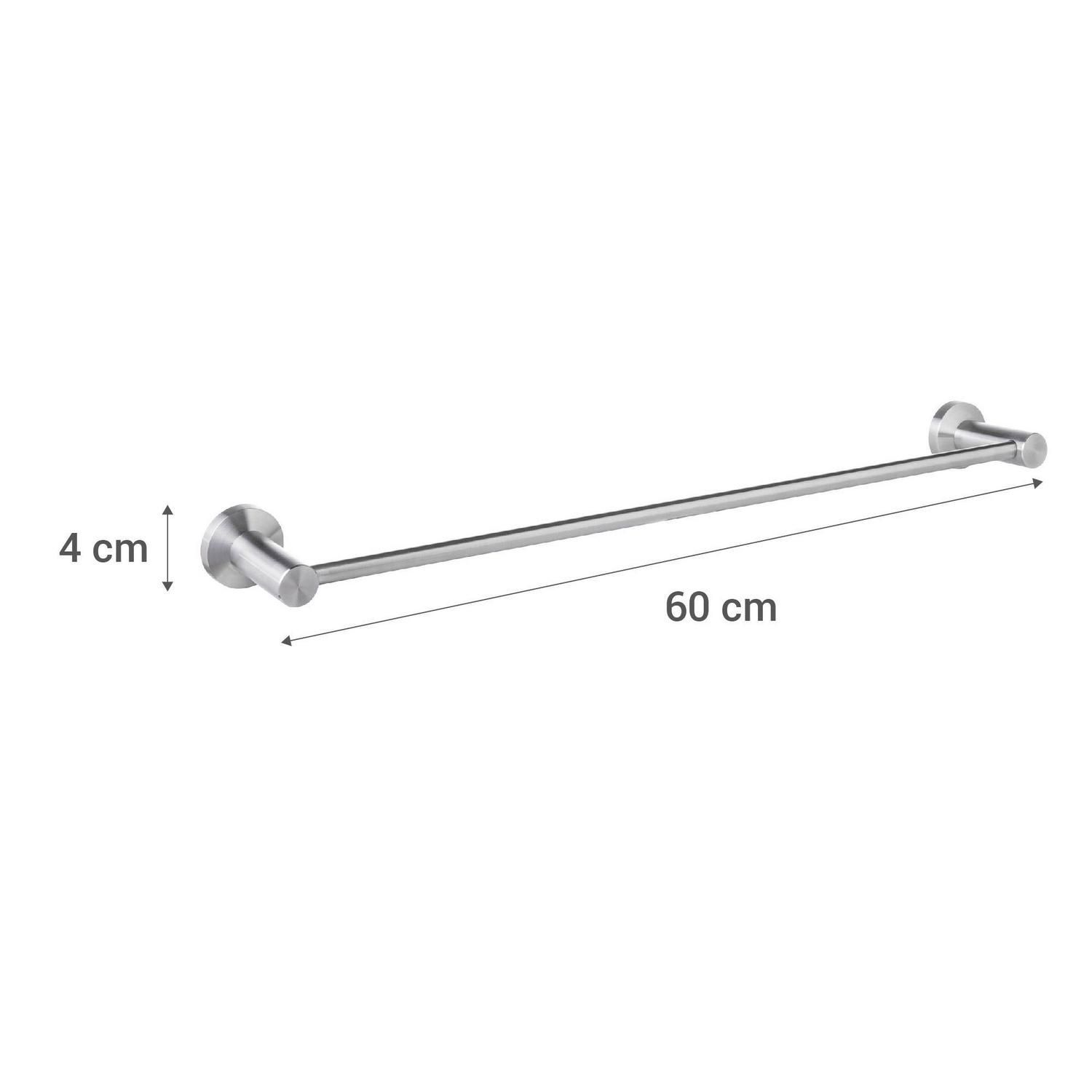 Este toallero de barra, con un largo de 60 cm, es resistente y duradero, ideal para el uso diario. Su diseño minimalista y acabado satinado lo hacen fácil de limpiar y combinar con cualquier decoración. Su material de niquel cepillado le da un toque sofisticado a tu baño.