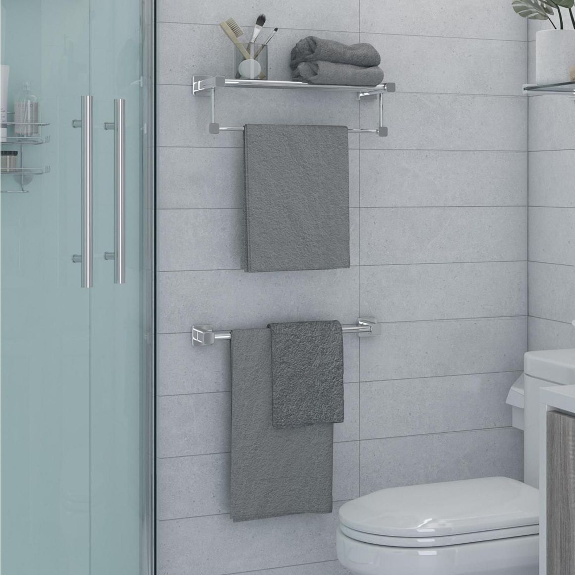 Para completar tu baño, considera los accesorios metálicos, como portapapeles, accesorios cromados y toalleros. Estos complementos son ideales para mantener tu baño organizado y con un estilo impecable.