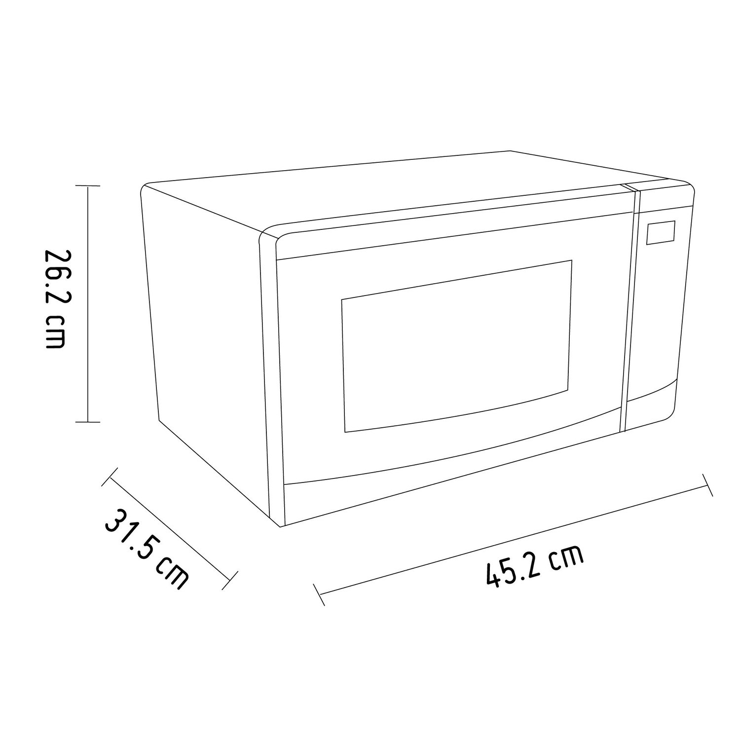 Este microondas Recco cuenta con una potencia de 1100 W y un voltaje de 120 V, asegurando un rendimiento eficiente. Sus dimensiones son de 45.2 cm de ancho, 31.5 cm de profundidad y 26.2 cm de alto, lo que lo hace ideal para cualquier espacio. Además, cuenta con la facilidad de un panel de control digital.