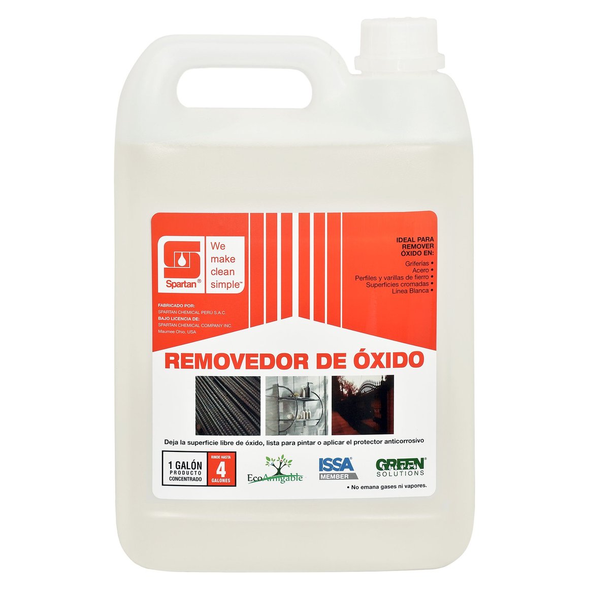 El Removedor de Óxido Inoloro de Spartan es la solución ideal para eliminar el óxido de tus superficies metálicas, dejándolas listas para pintar o aplicar un protector anticorrosivo. Este producto es perfecto para griferías, acero, perfiles y varillas de acero, superficies cromadas y línea blanca. Con su presentación en galón, podrás cubrir hasta 4 galones de superficie, asegurando un rendimiento óptimo.
