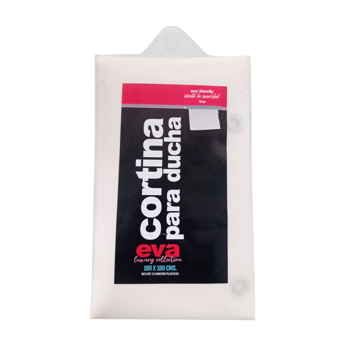 La Cortina de Baño Eva Beige 180x180cm es ideal para baños modernos. Su sistema de colgado con ojetillo plástico te permite instalarla fácilmente. Además, incluye 12 ganchos de plástico, 12 ojales metálicos y 3 magnetos inferiores para un mejor ajuste. La cortina está diseñada para ser semiopaca, lo que te permite disfrutar de la privacidad que necesitas sin perder la luminosidad del baño. Su material EVA la hace resistente al agua y fácil de limpiar.