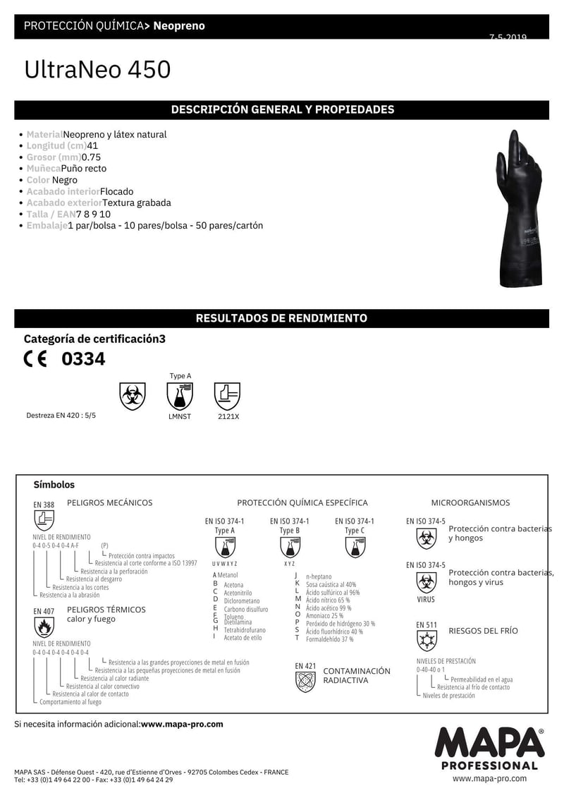 Guantes de Seguridad Industriales de Neopreno 450 Talla L